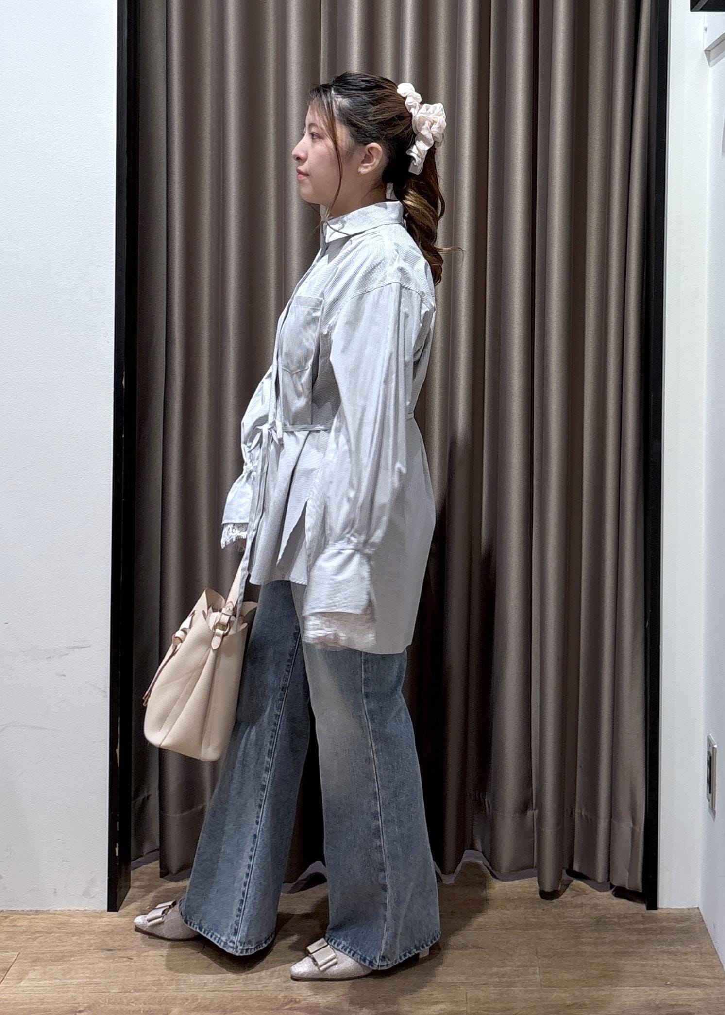 VISフレアシルエットデニムパンツサックス / M¥8,899レビュー153cmMサイズ着用少し厚みのあるパンプスを履いて床につかない丈感です!