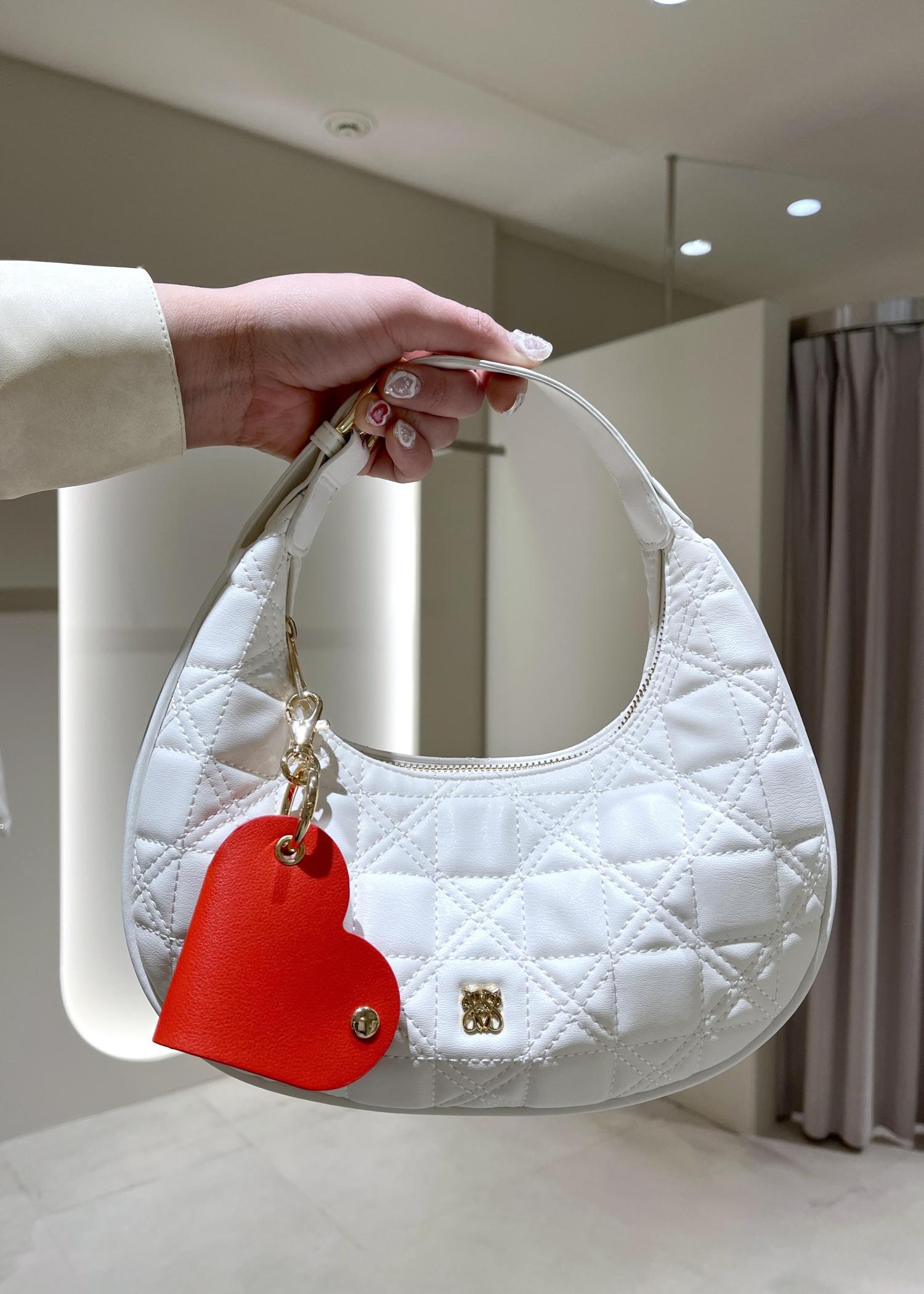 VISハートチャーム付き2WAYキルトバッグオフホワイト / F¥6,919レビューキルティングの可愛さとハントのチャームがポイントに!!ポーチやお財布スマホ、ペットボトルは横にしたら入ります!