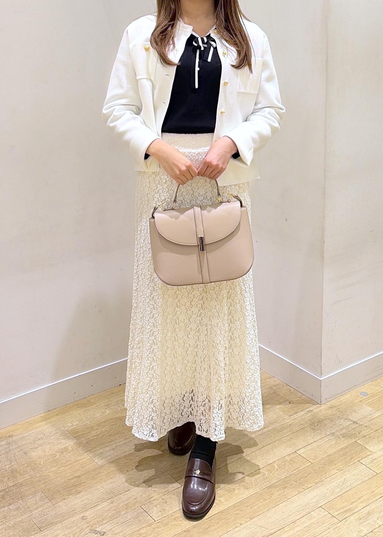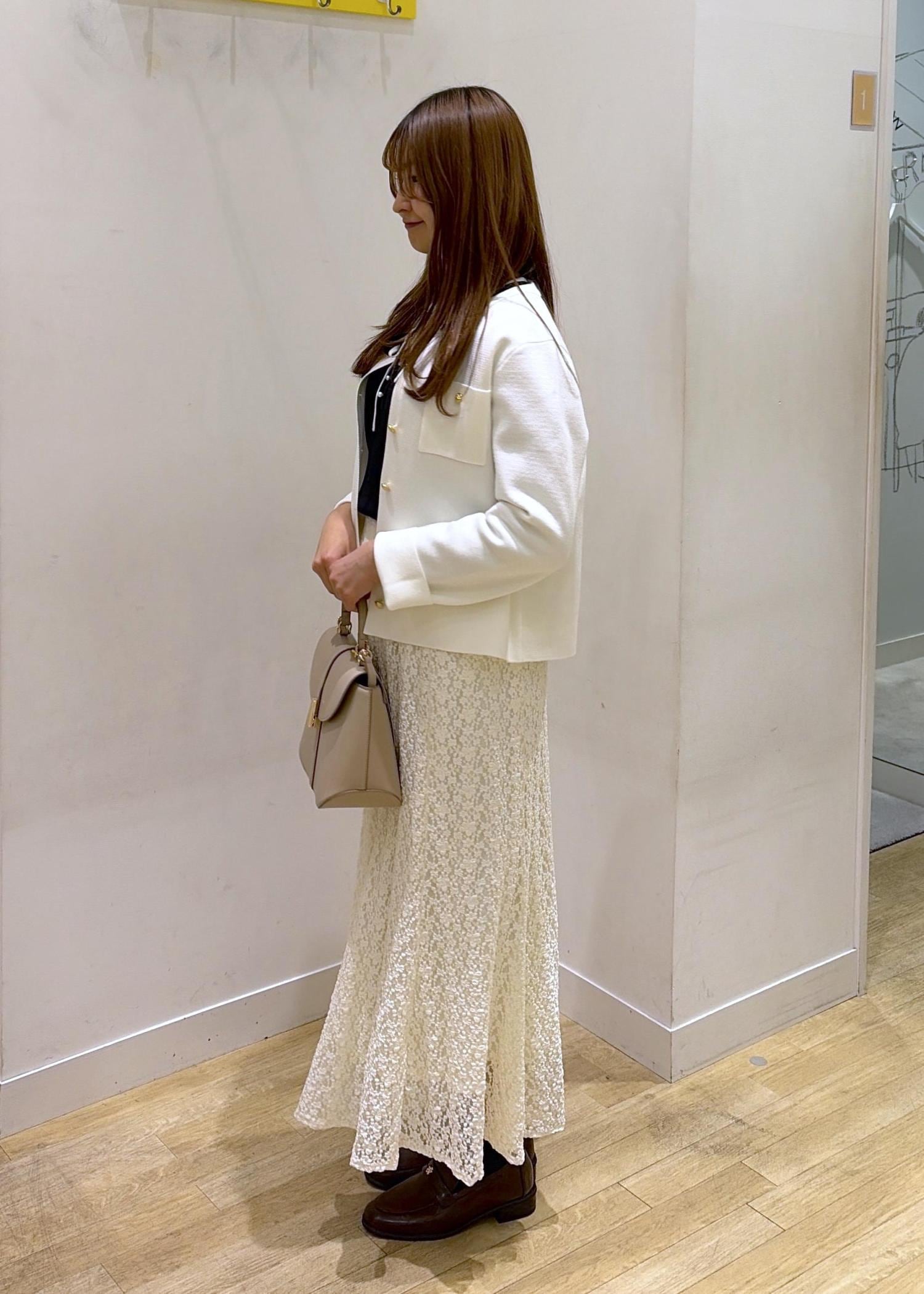 春っぽさを感じさせる白色とレーススカートはかわいさと綺麗が交わってデートにも最適です。