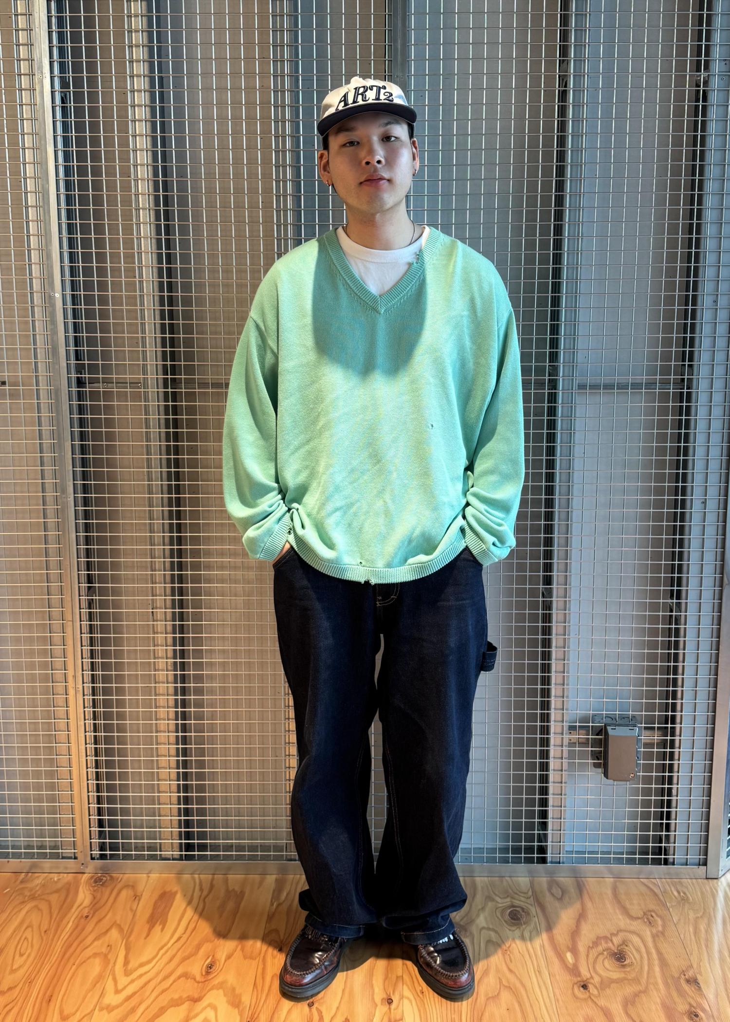 肉厚ボディーで肌触りの良いクルーネックスウェットと、ガシガシ使えるワークパンツのバランスが良いコーディネートとなっています!