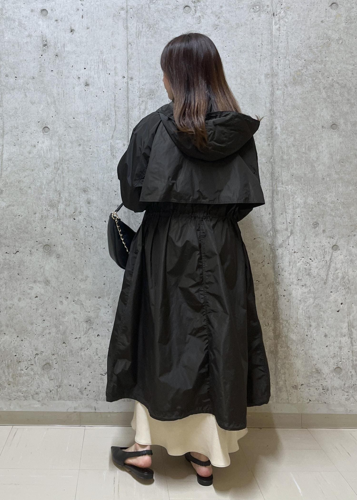 襟元・ウエスト・裾まわりはドロストご付いていて絞れる為、低身長の方でも大きく見えず、メリハリあるシルエットで着用できます。