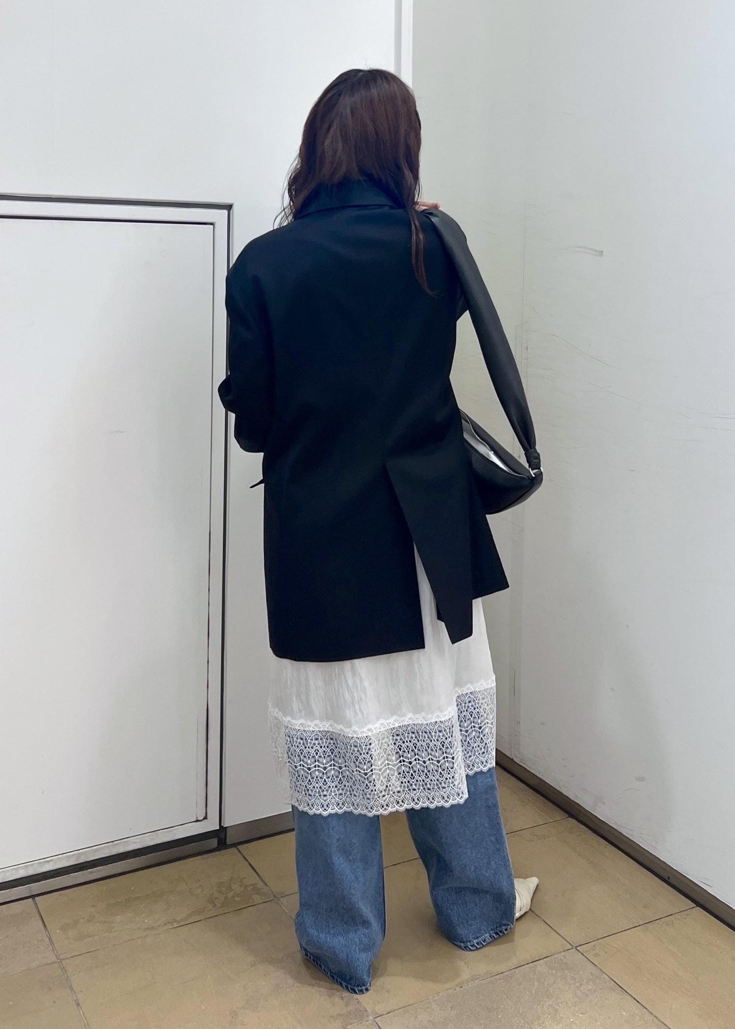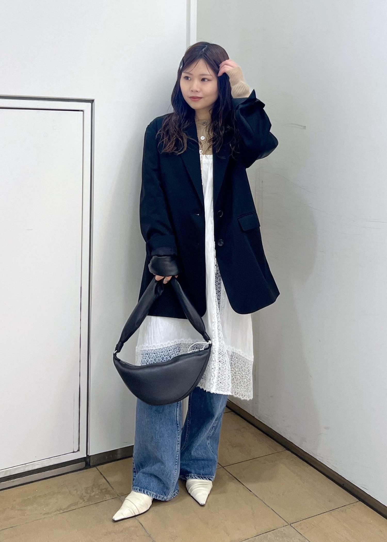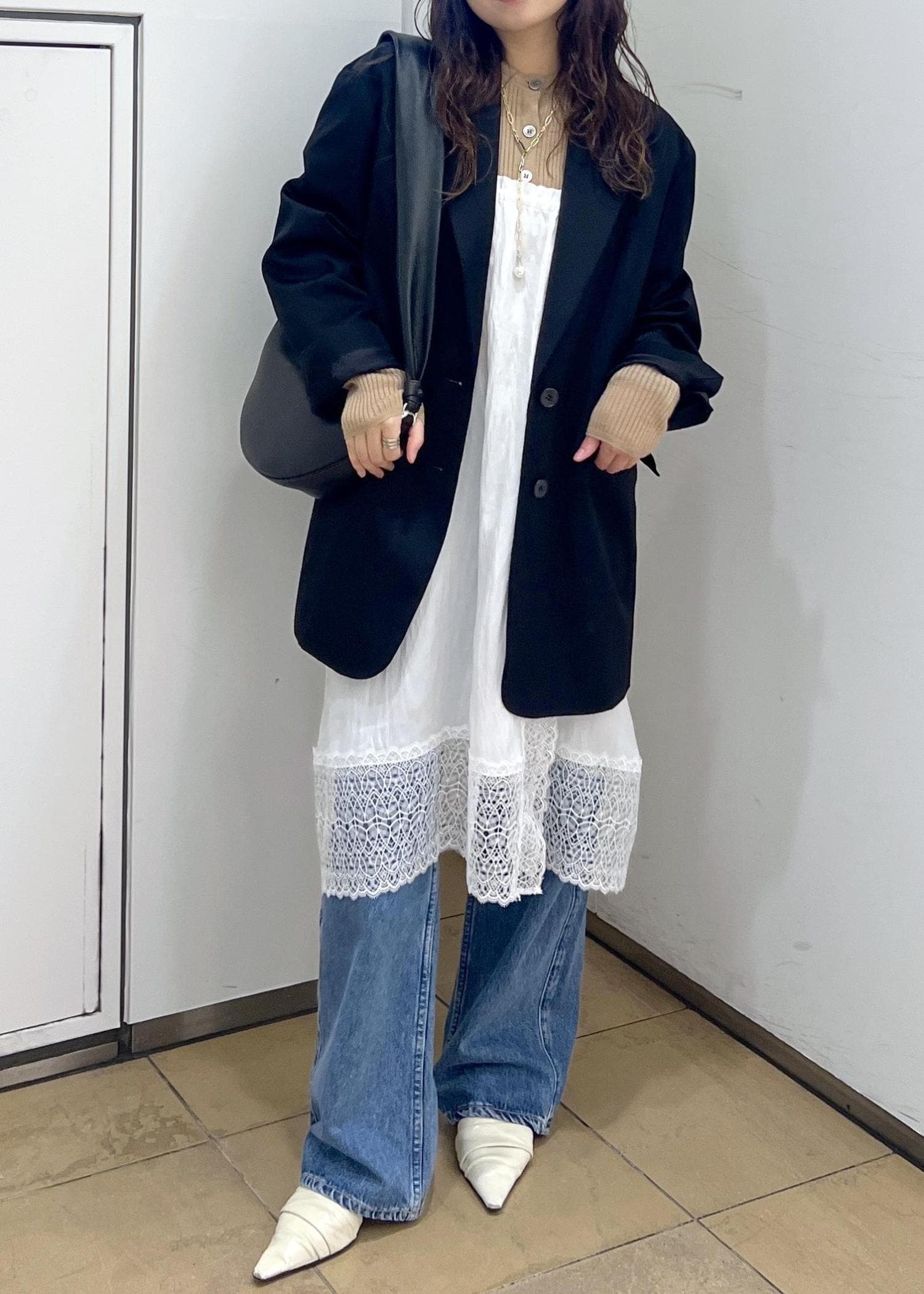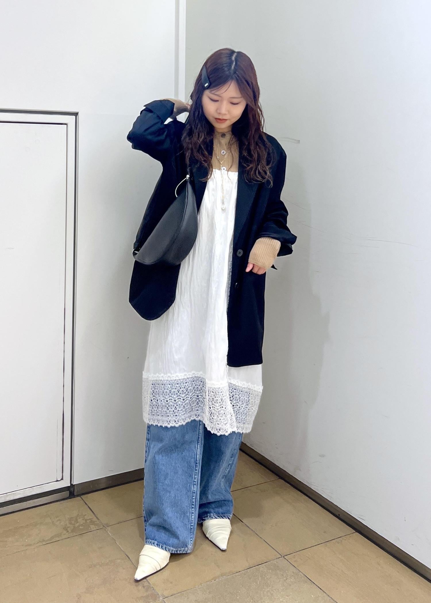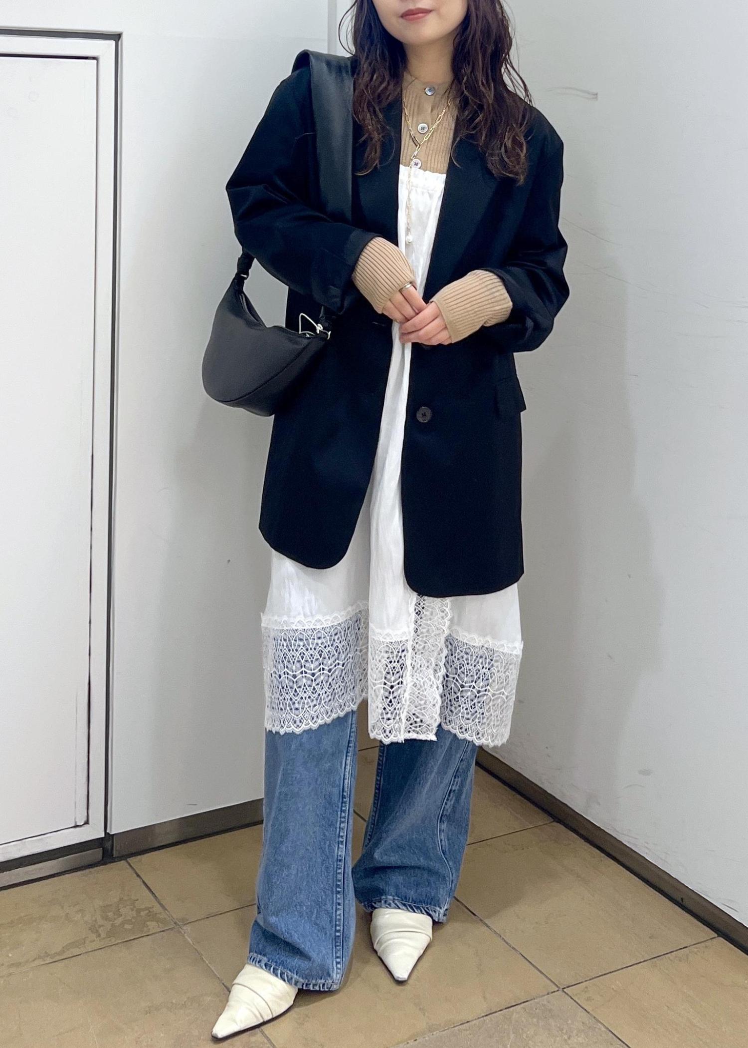 トレンドのレースをレイヤードし、デニムで合わせてモードカジュアルに♡
