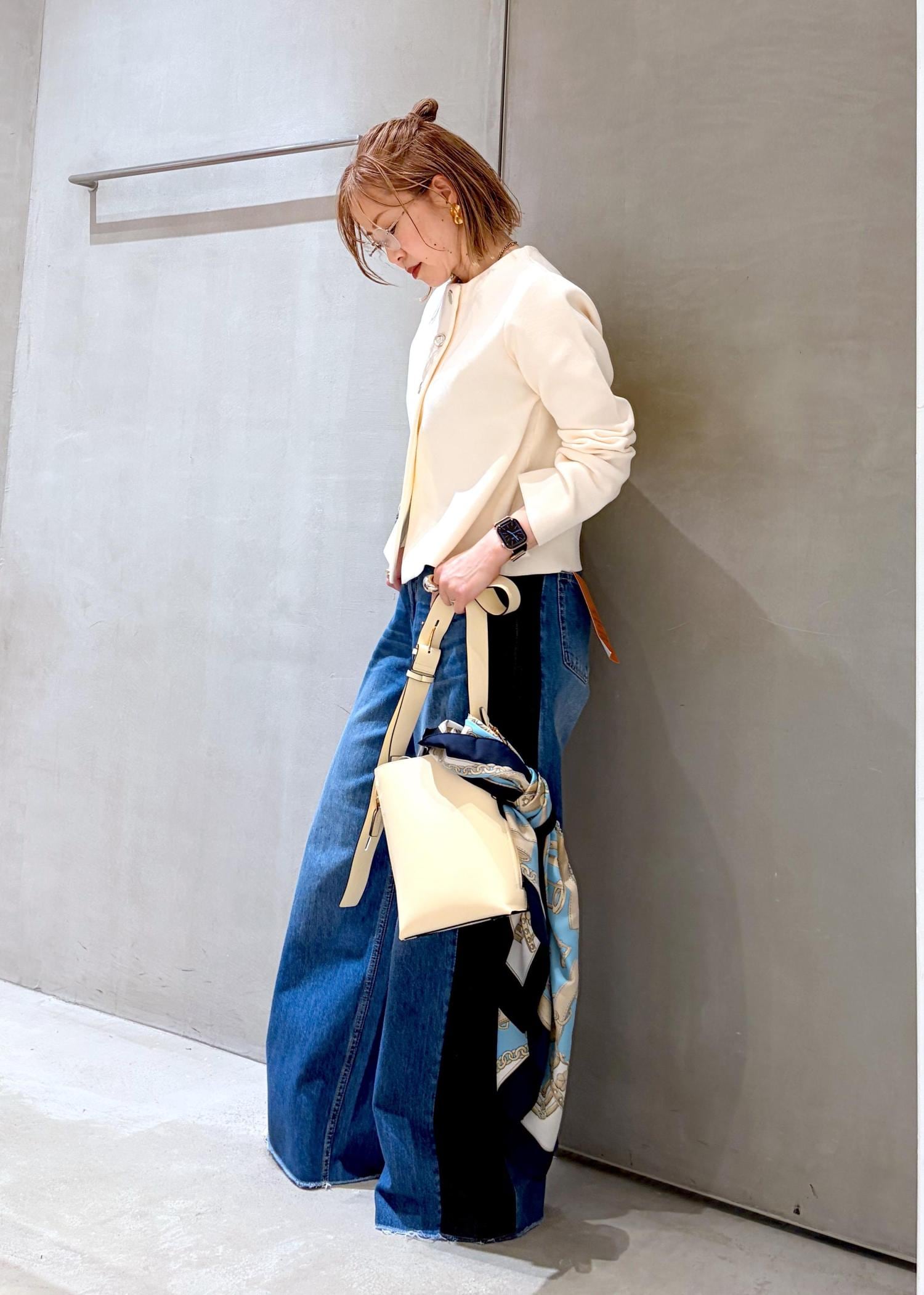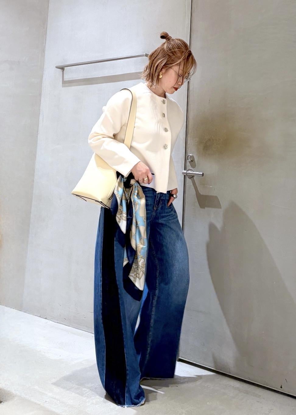 トレンドのスカーフを取り入れて、更に春要素をプラスしてみました。