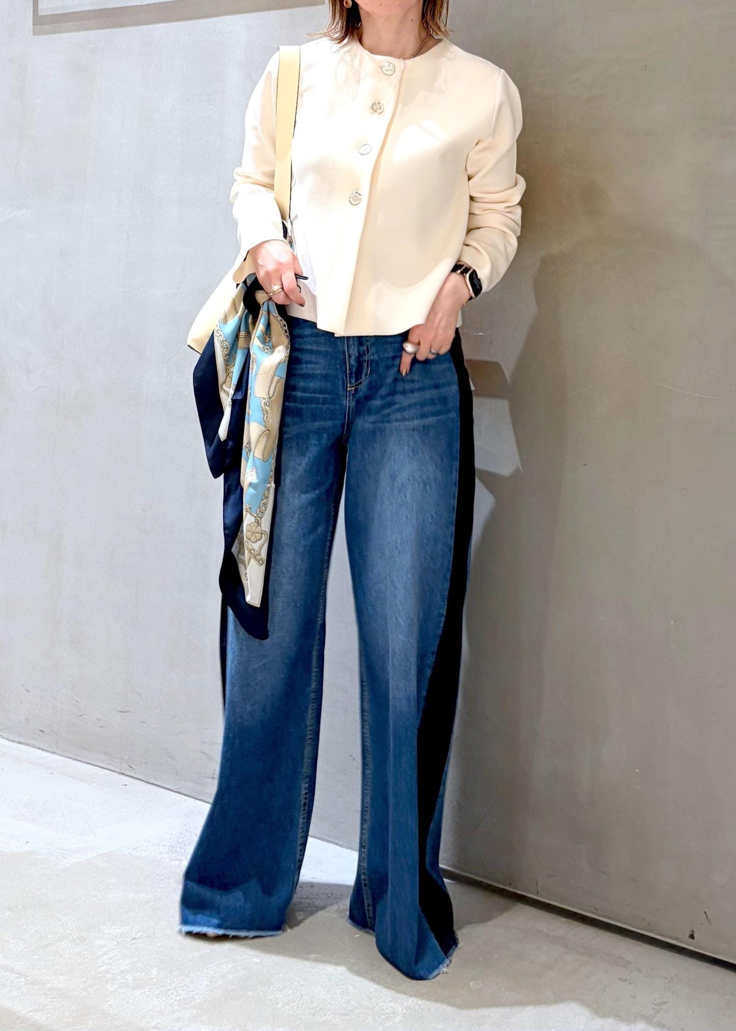 2BUY10%OFFLE CERCLE par ropé【LANCER/ランサー】2TONE REMAKED PANTSブルー系 / F¥17,600レビュー昨年もご好評でしたランサーのバギーデニム。コットン100%にも関わらず柔らかく、ノンストレスで着用できます。ウエストから裾に向かって広がるバギーラインはメリハリがつくので、足が長く見えます。腰回りにゆとりがあるサイズ感です。