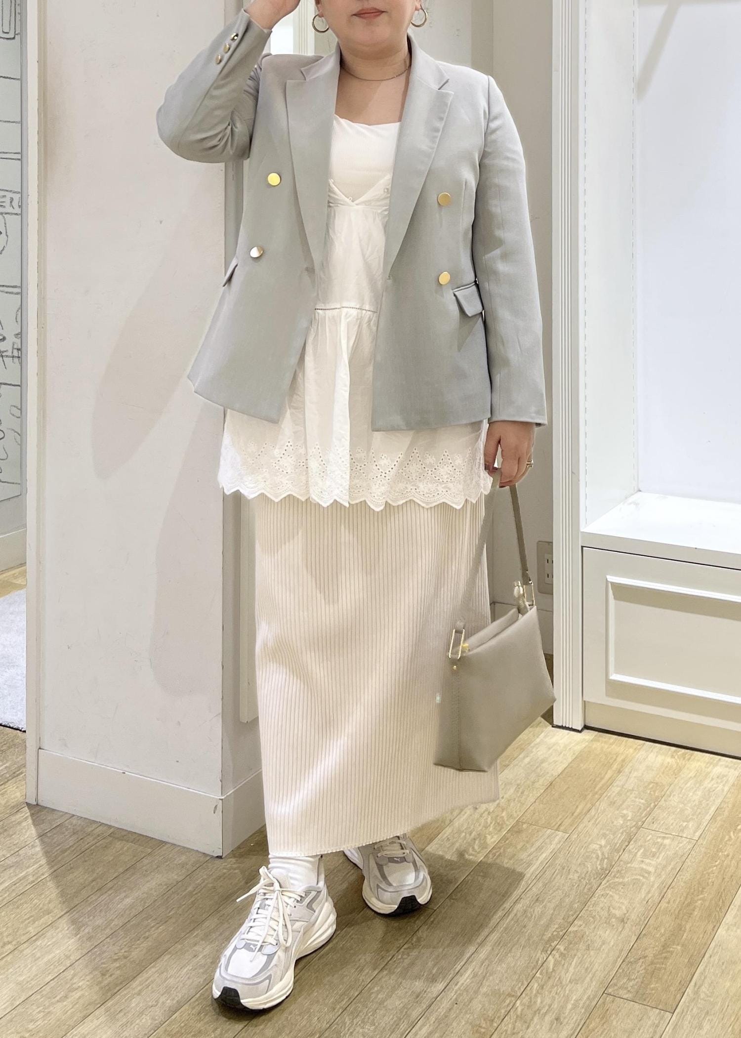 あえてのスニーカーでカジュアルダウン。