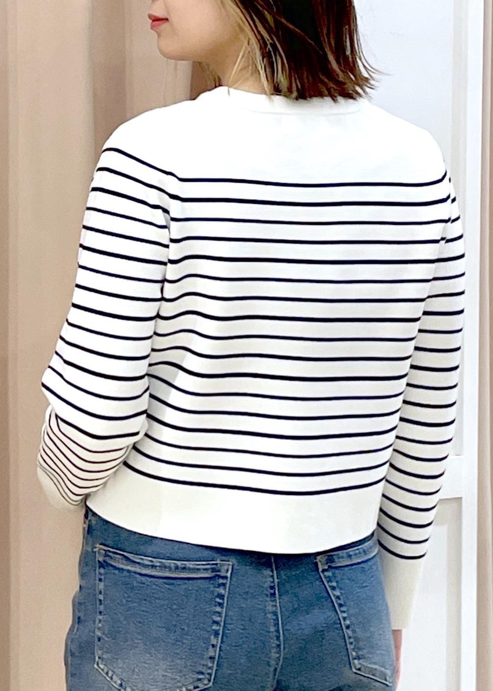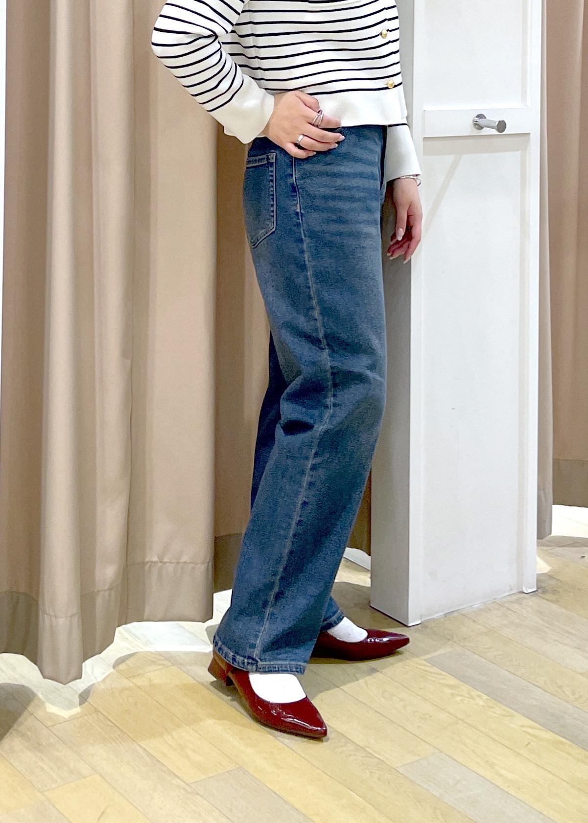 アウターを脱いでもボーダー×デニムで春らしいスタイリングにしました。