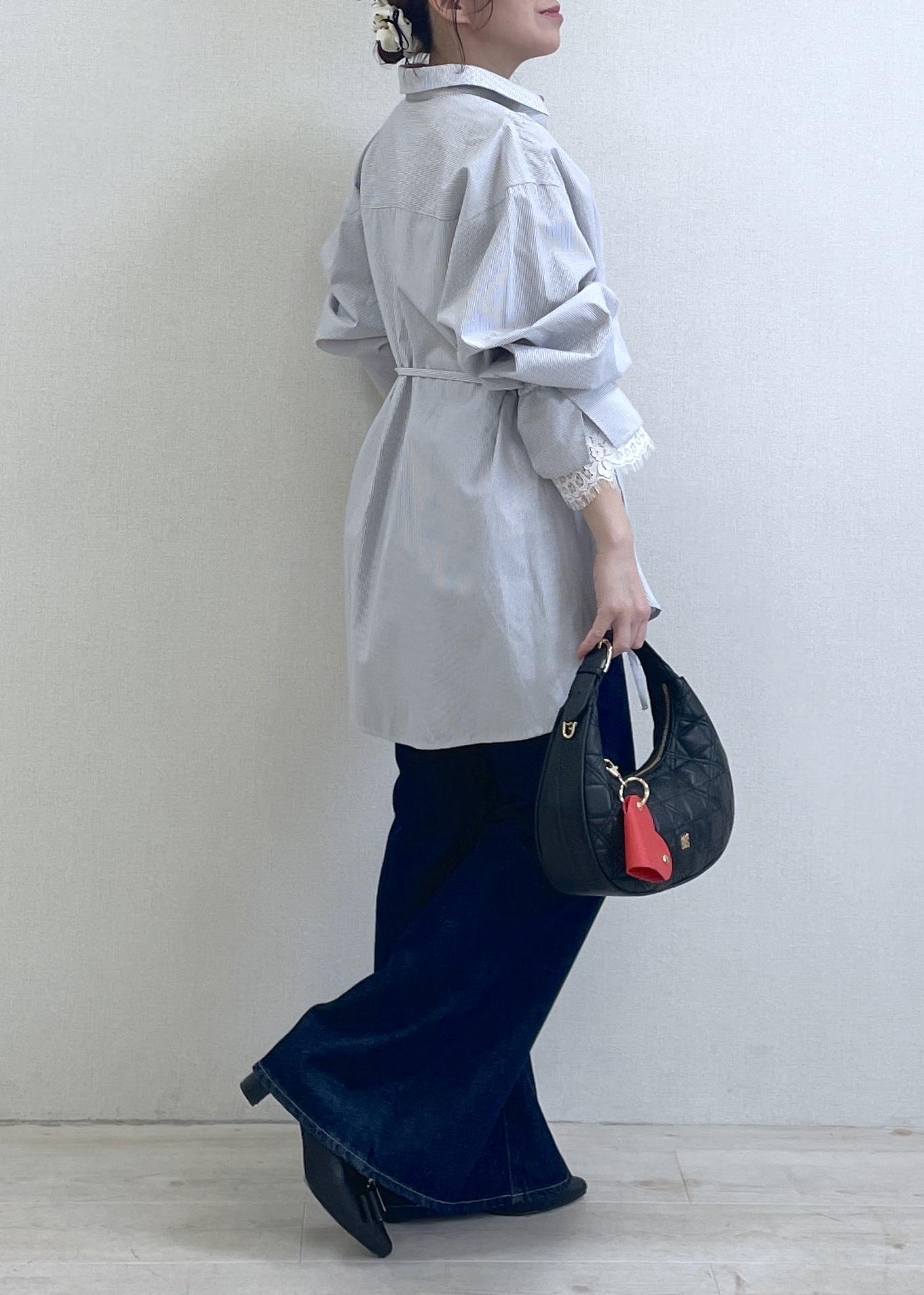 このゆるっとした感じが綺麗なブラウスで、ウエストに紐がついているので、絞ることができシルエットも綺麗です! -