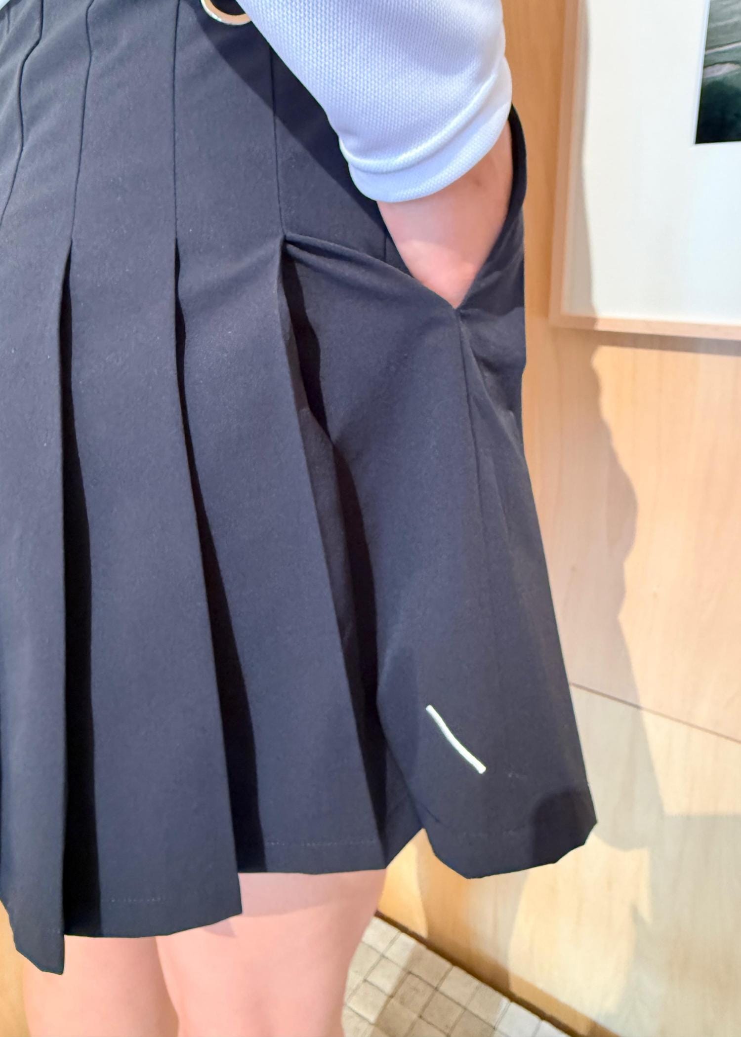 携帯やボールなど重めのものをスパッツのポケットに入れる事で、走っても振ったときも太ももにピッタリくっついているのでスカートが揺れません!
