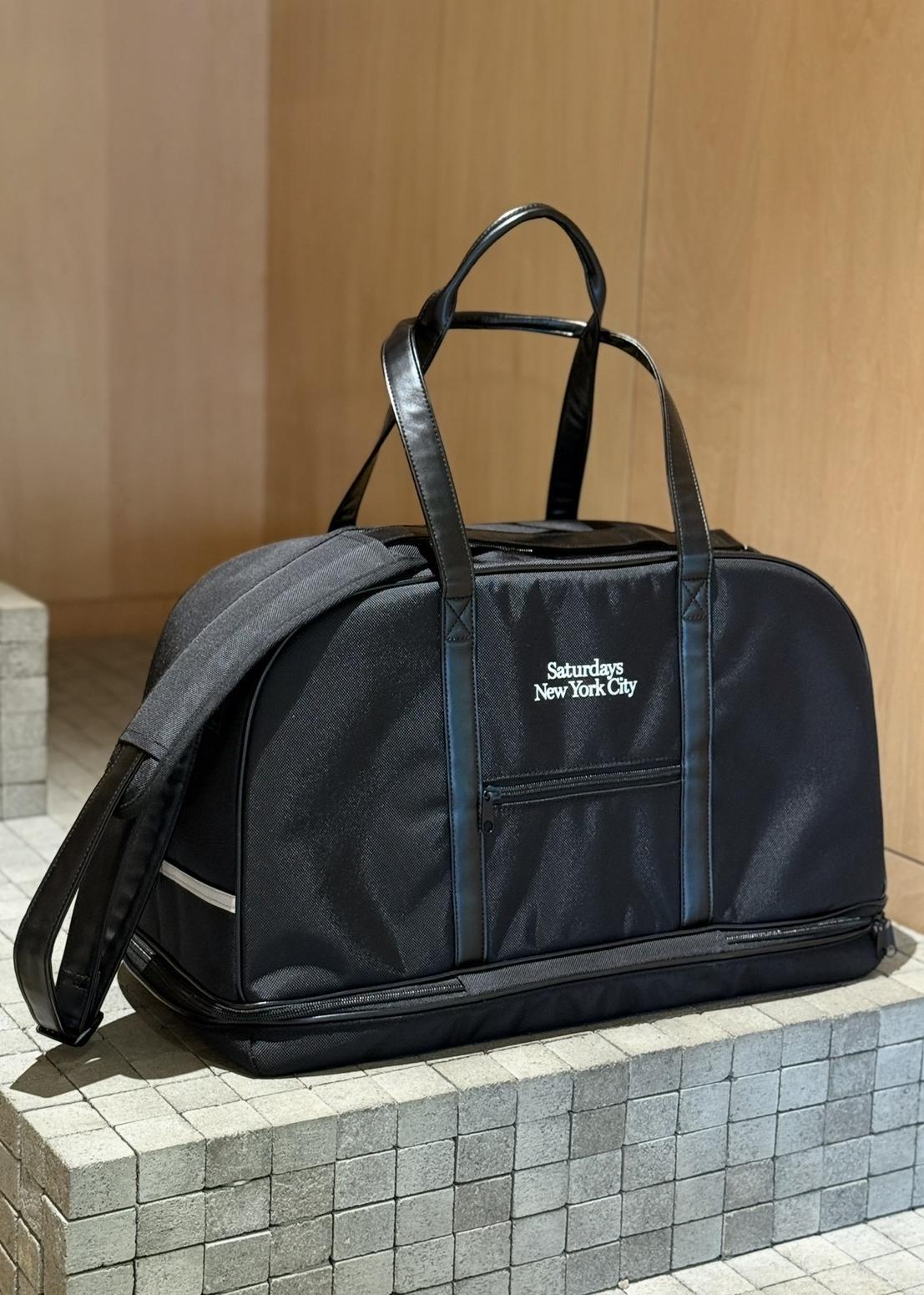 Saturdays NYCBoston Bagブラック / F¥22,000レビューストラップ付きのボストンバッグ靴や小物類はマチのジップがあるところから入れられます。