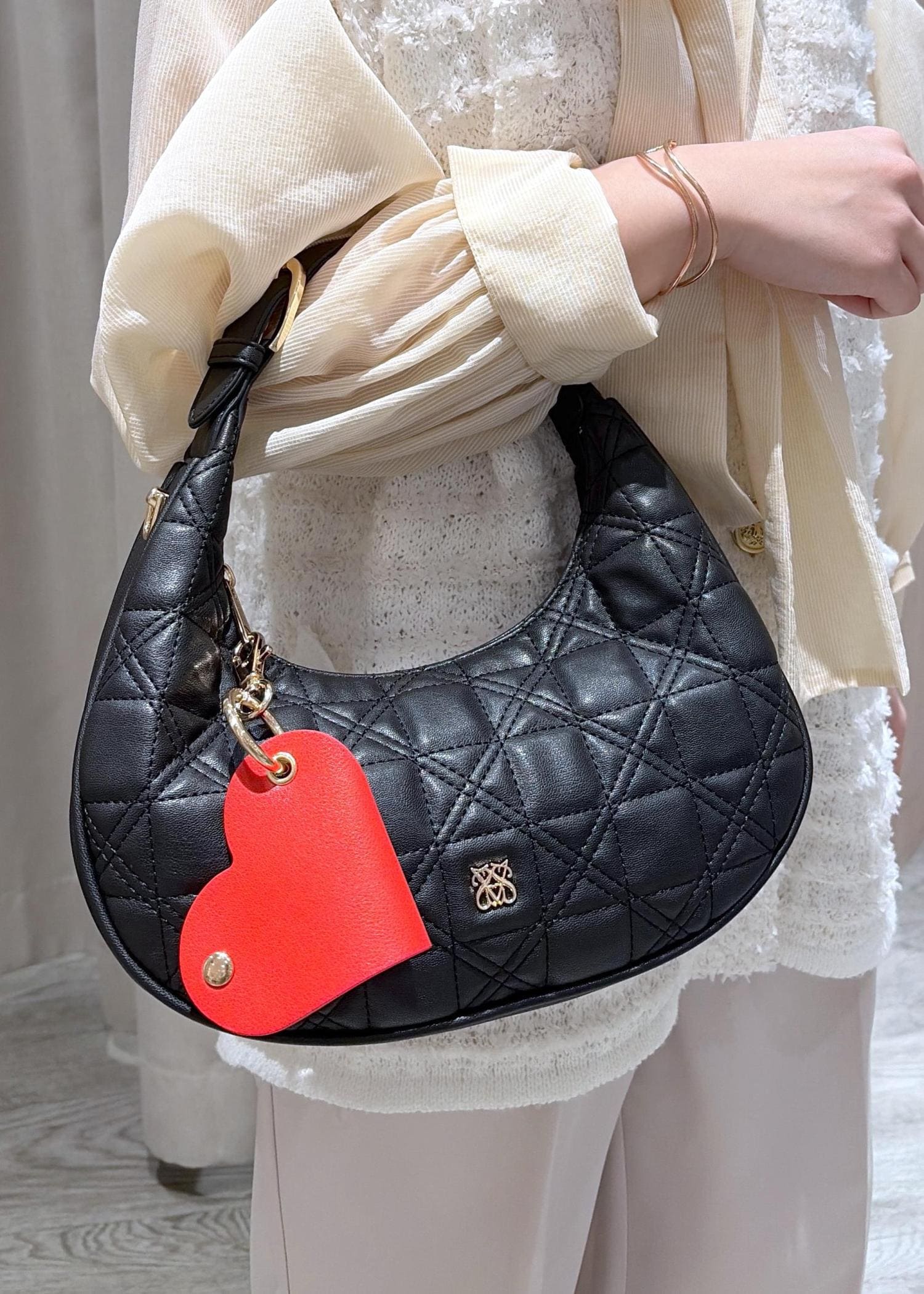 丸みのあるシルエットとキルティングが可愛らしいバッグです♪