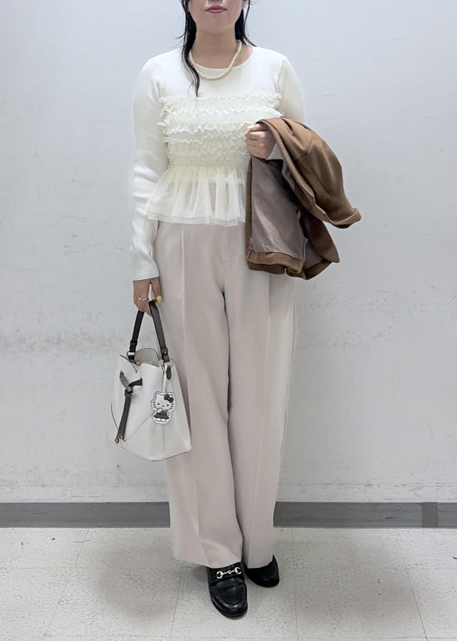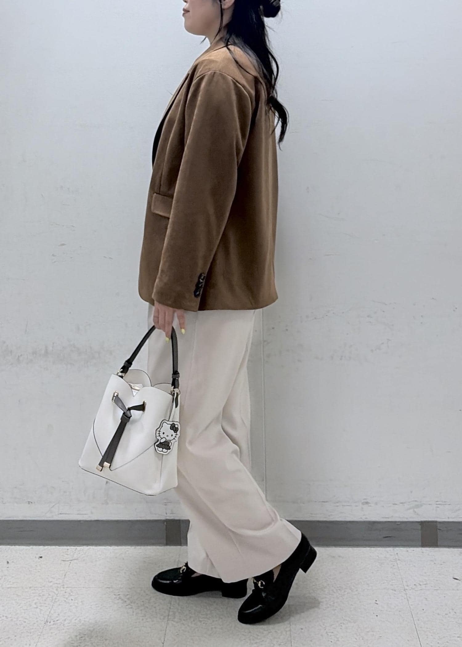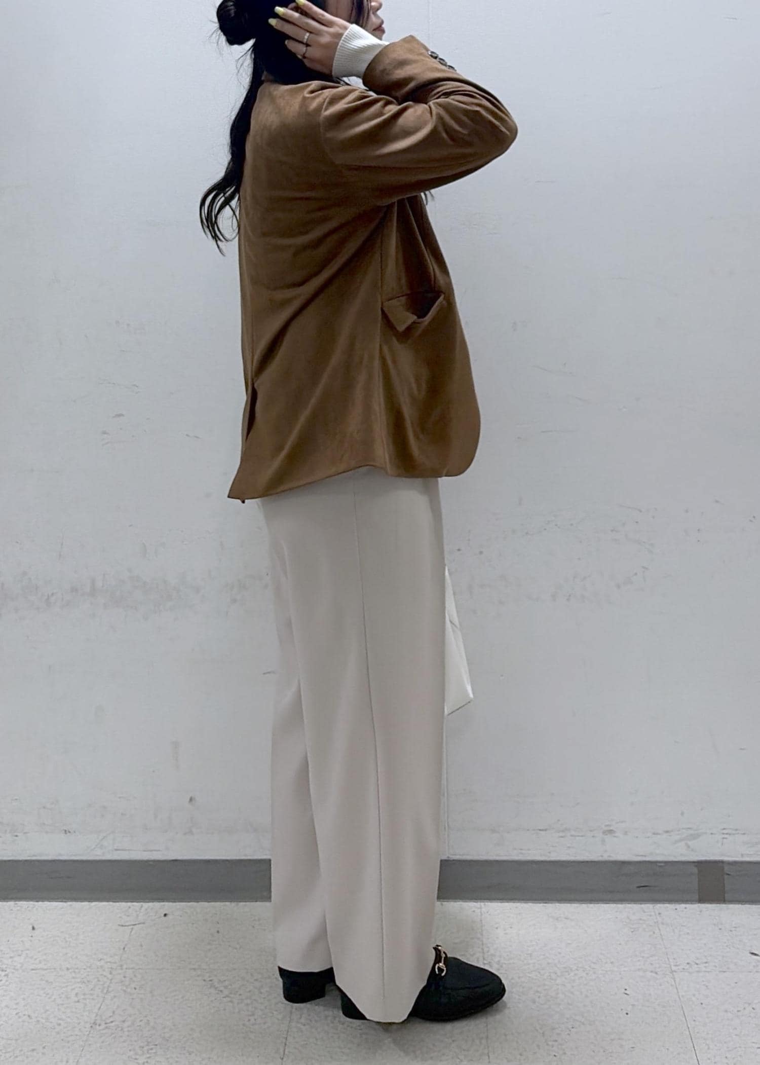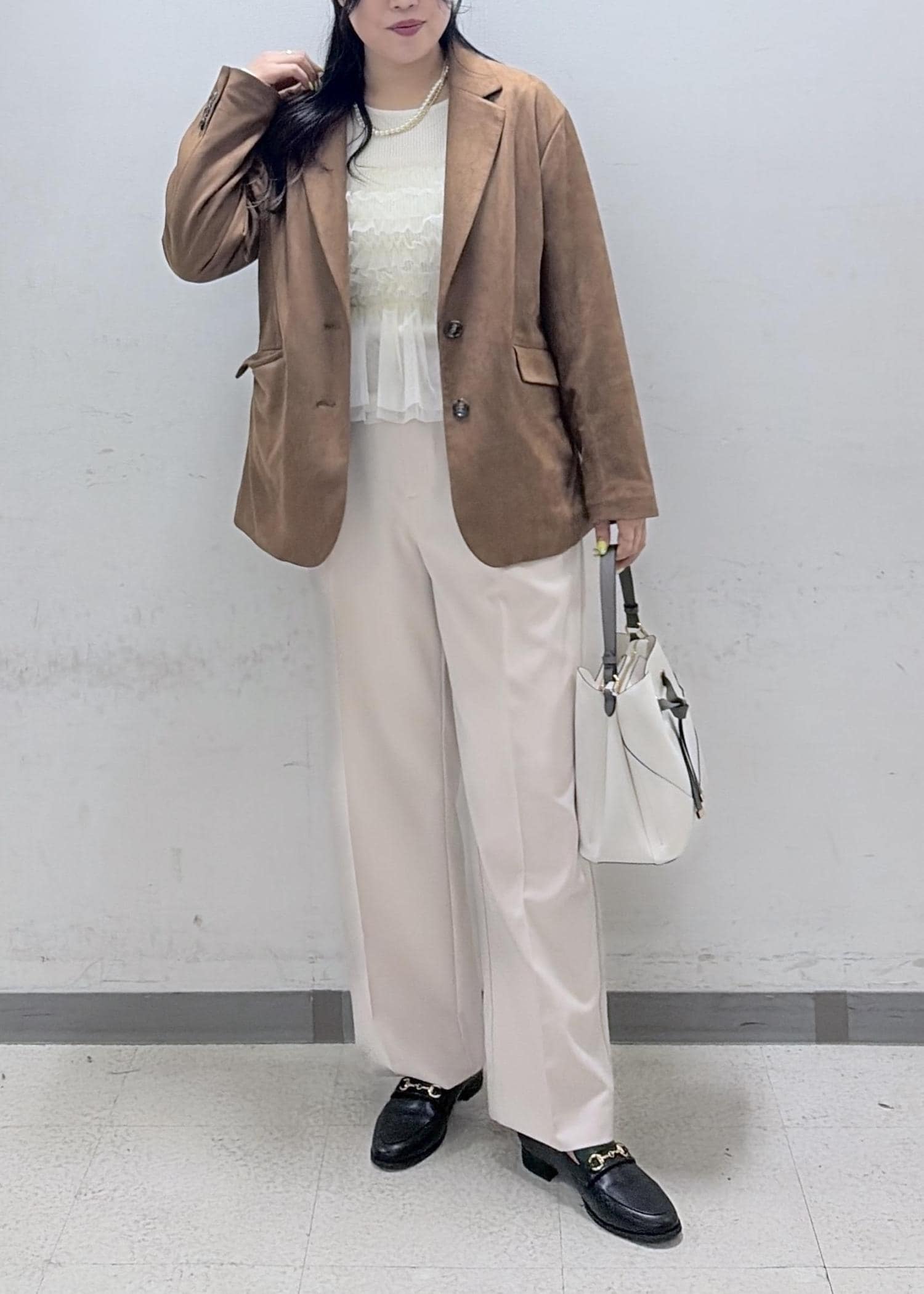 キャメル系のジャケットと合わせてきちんと感をプラスしました。