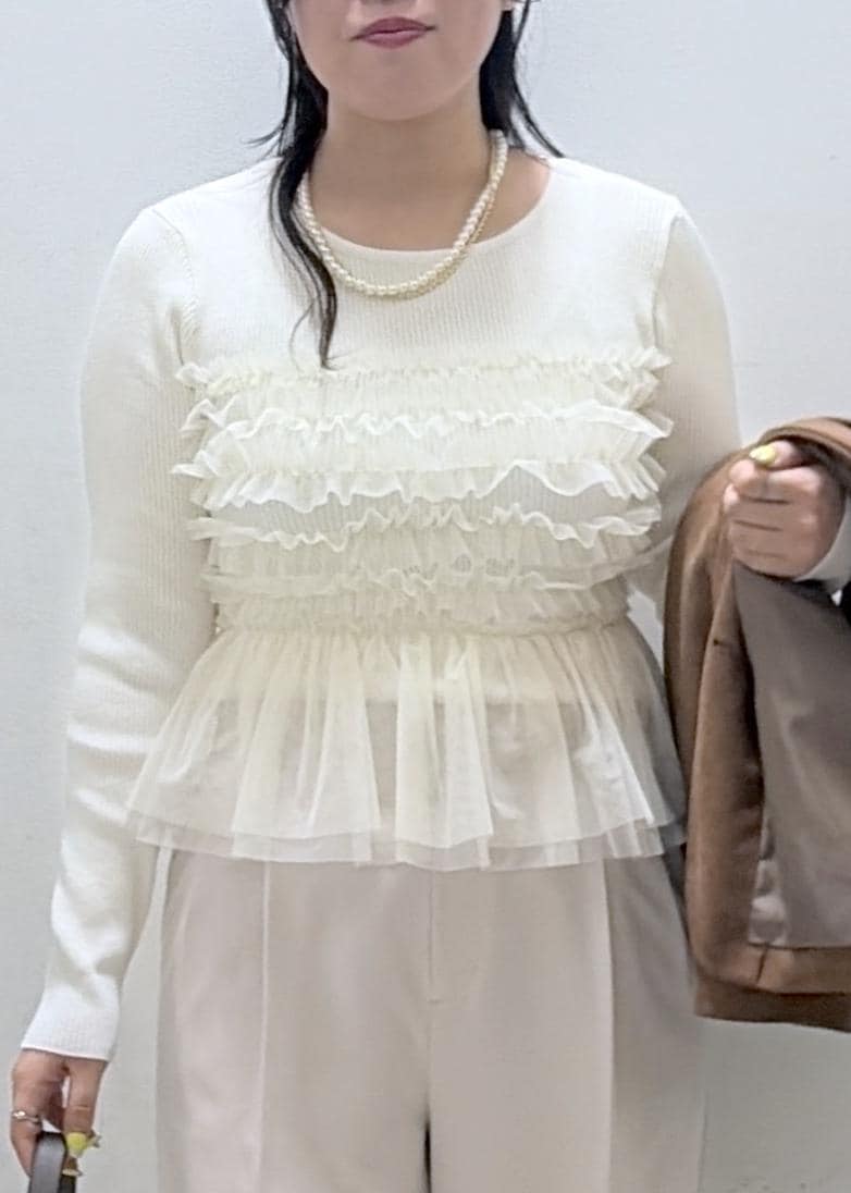 2BUY10%OFFVISチュールフリルドッキングニット/イージーケアオフホワイト / F¥6,589レビューニット生地はとても伸縮性があり、程よいフィット感です。