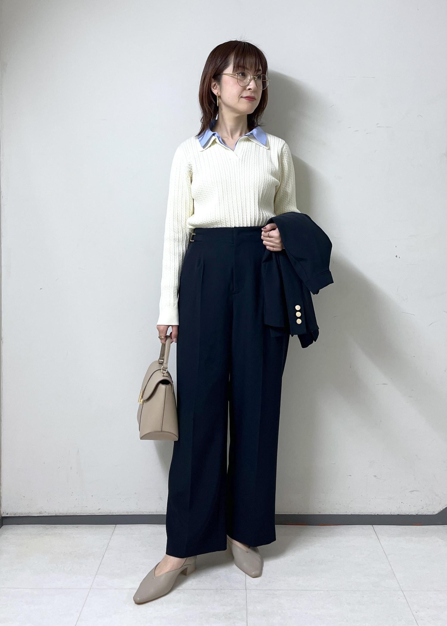 スッキリとした印象のシルエットで、ジャケットのインナーにも合わせやすいです♪ -