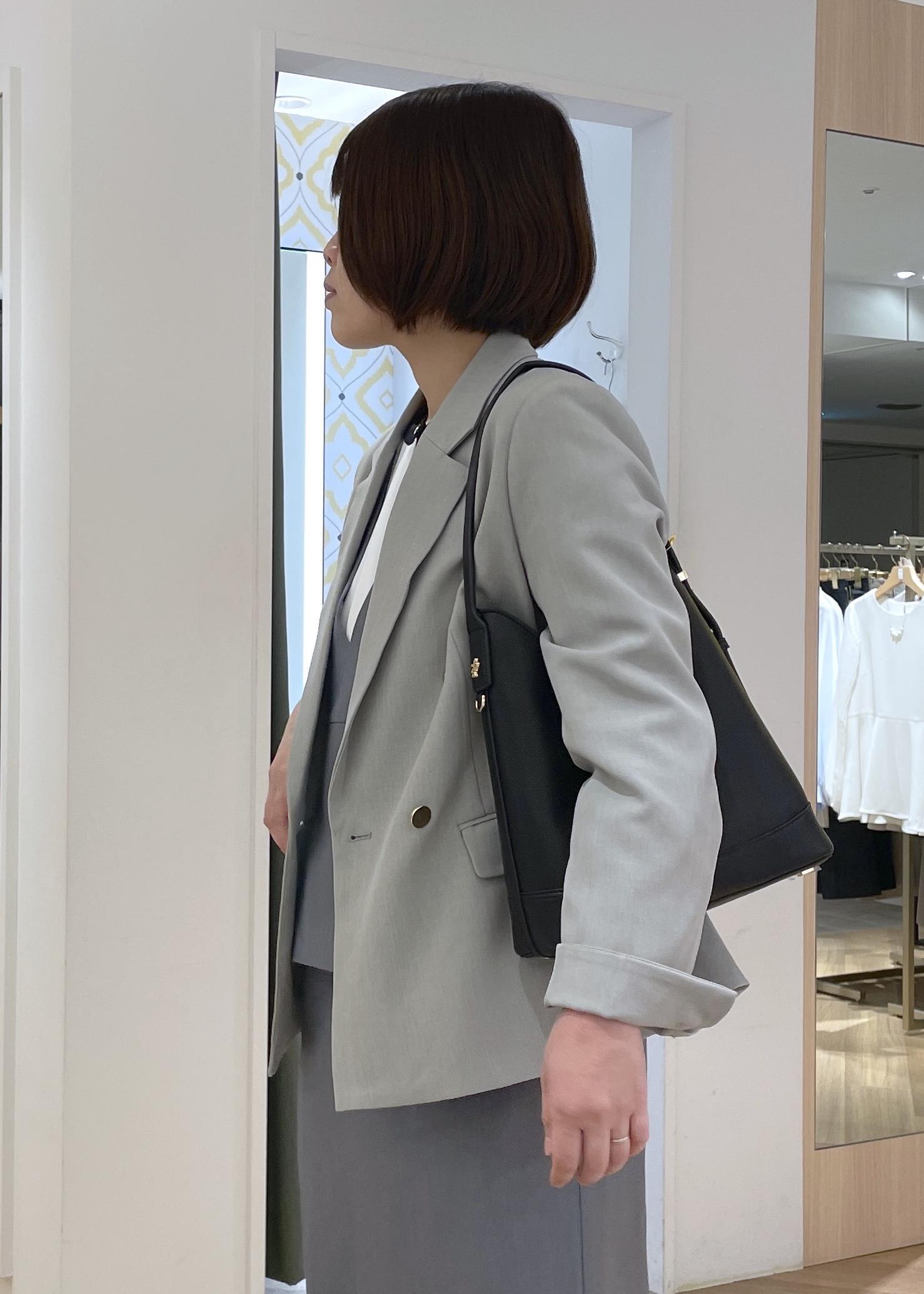 柔らかいカラー合わせだったので、バッグとシューズは黒でコーデを引き締めました!