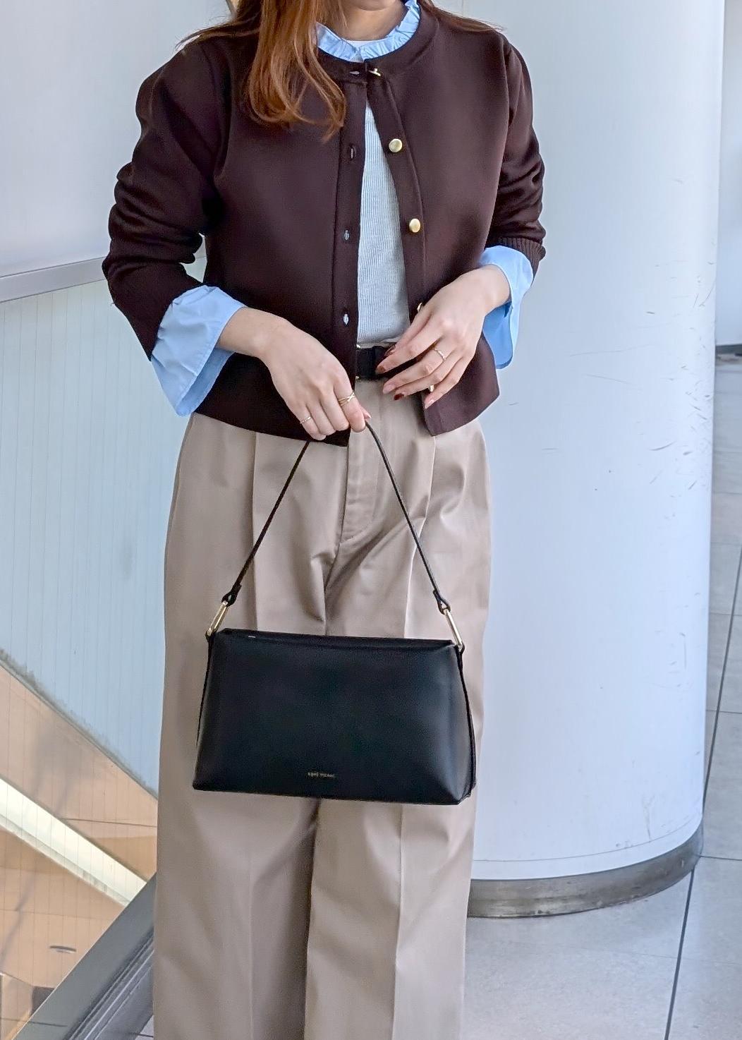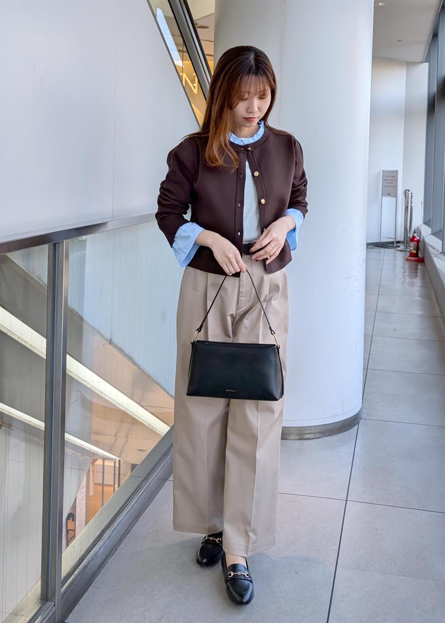 首元と袖のフフリルが可愛いカーディガンを使った春のワントーンスタイル。フリルは取り外し可能なためお洋服に合わせて変えて頂けます。ブラウン×ブルーが華やかにしてくれます!