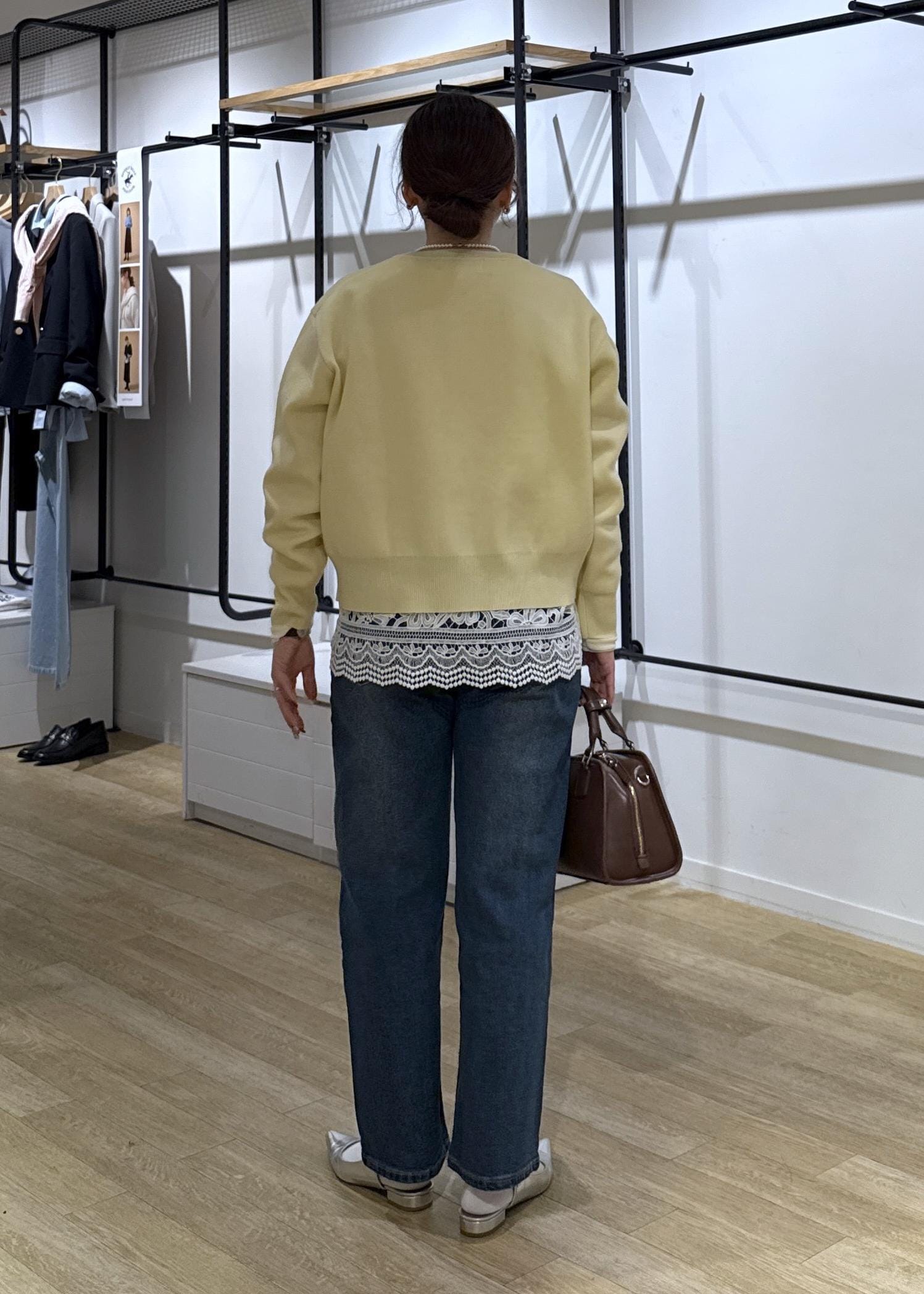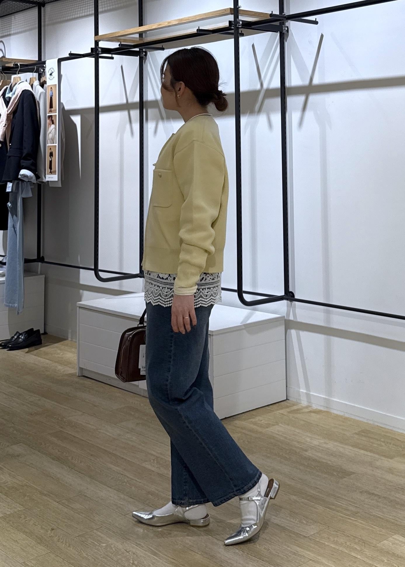 カーディガンとデニムだけだとシンプルなので