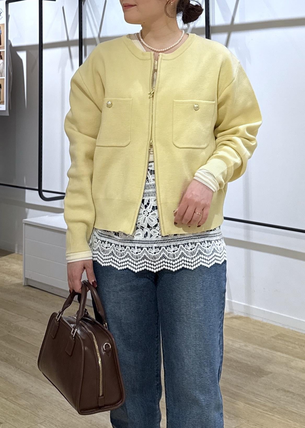トレンドカラーのイエローカーディガンにデニムで春のカジュアルコーデに!