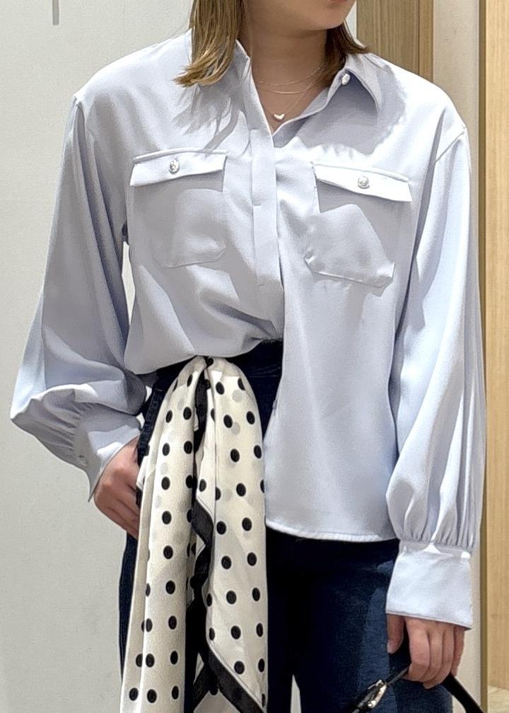 VISメタル釦シャツブラウス/イージーケアサックス / F¥5,489レビューさらっとした生地感でゆったり着られるので動きやすく、着やすいです!