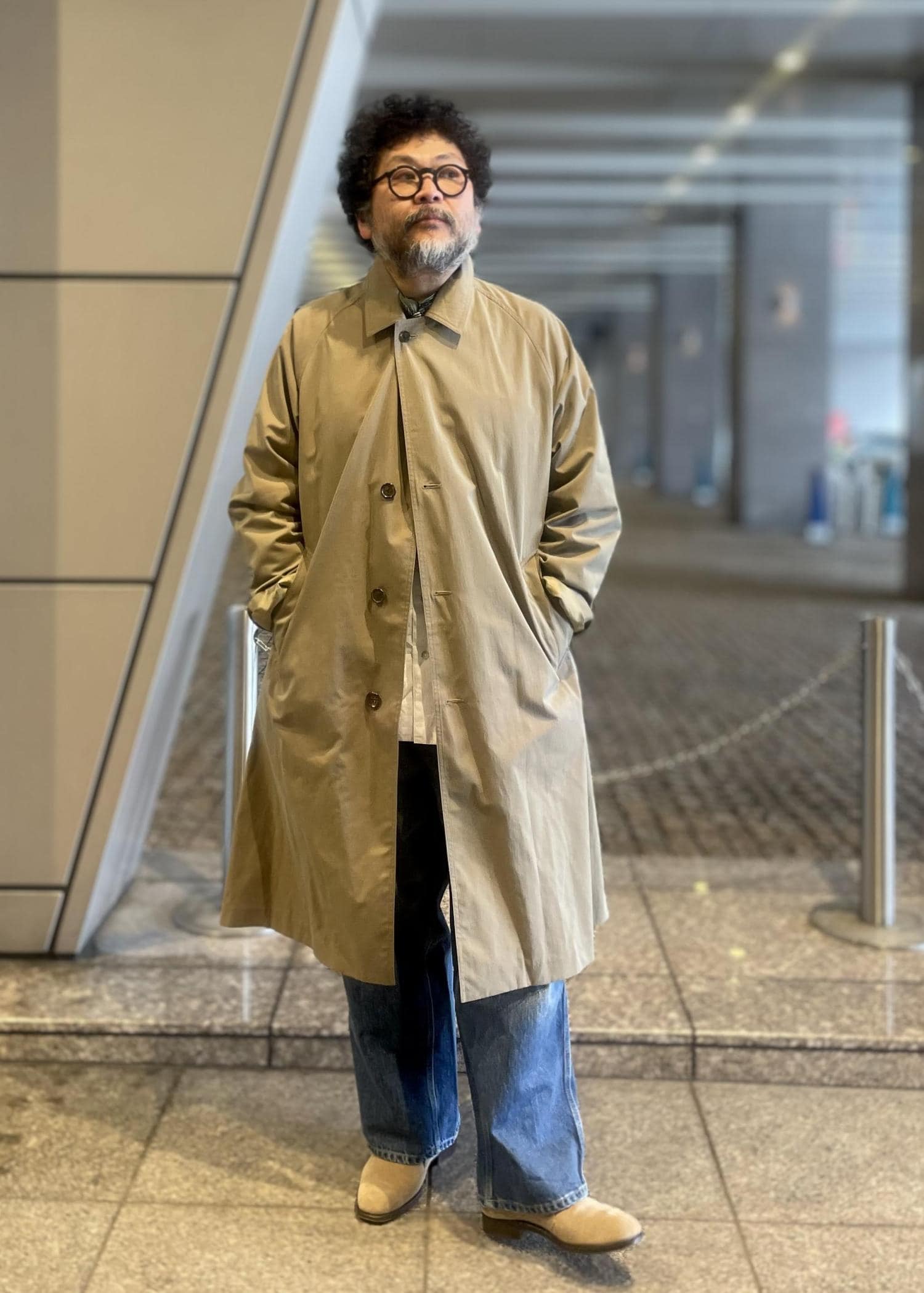 ヴィンテージのミリタリーコートをベースに、今の空気感に合わせて仕上げた一着です。合わせやすい丈感と、ほどよくゆとりを持たせたAラインシルエットで、さっと羽織るだけでも雰囲気が出ます。ボタンを上まで留めたときにあえて少しラフに収まる衿まわりも、堅くなりすぎず、程よい抜けをつくってくれるポイント。