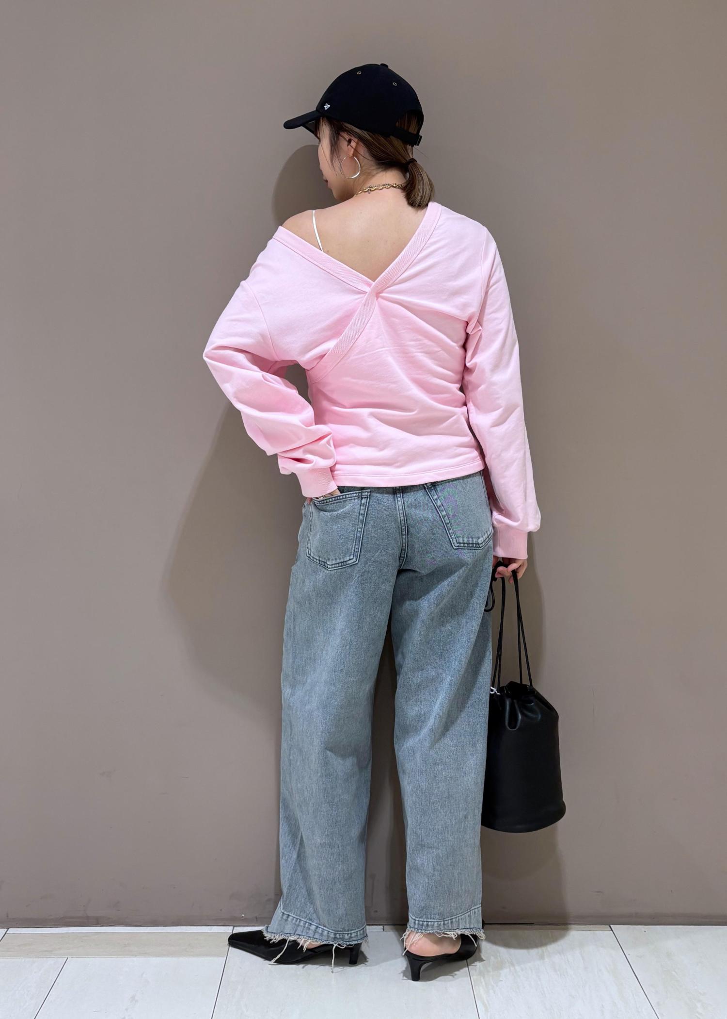後ろの空きが綺麗なトップス。着用するだけで、抜け感がでて女らしく◎
