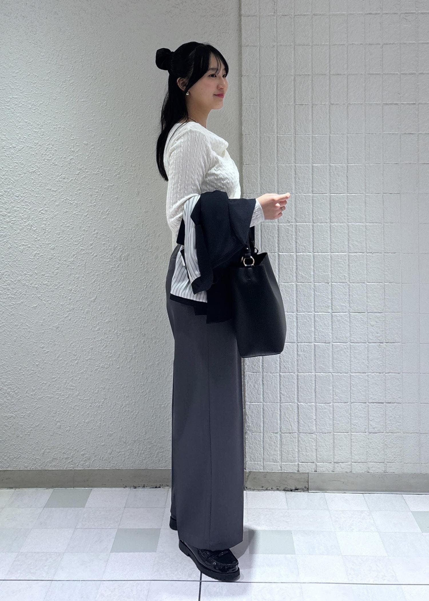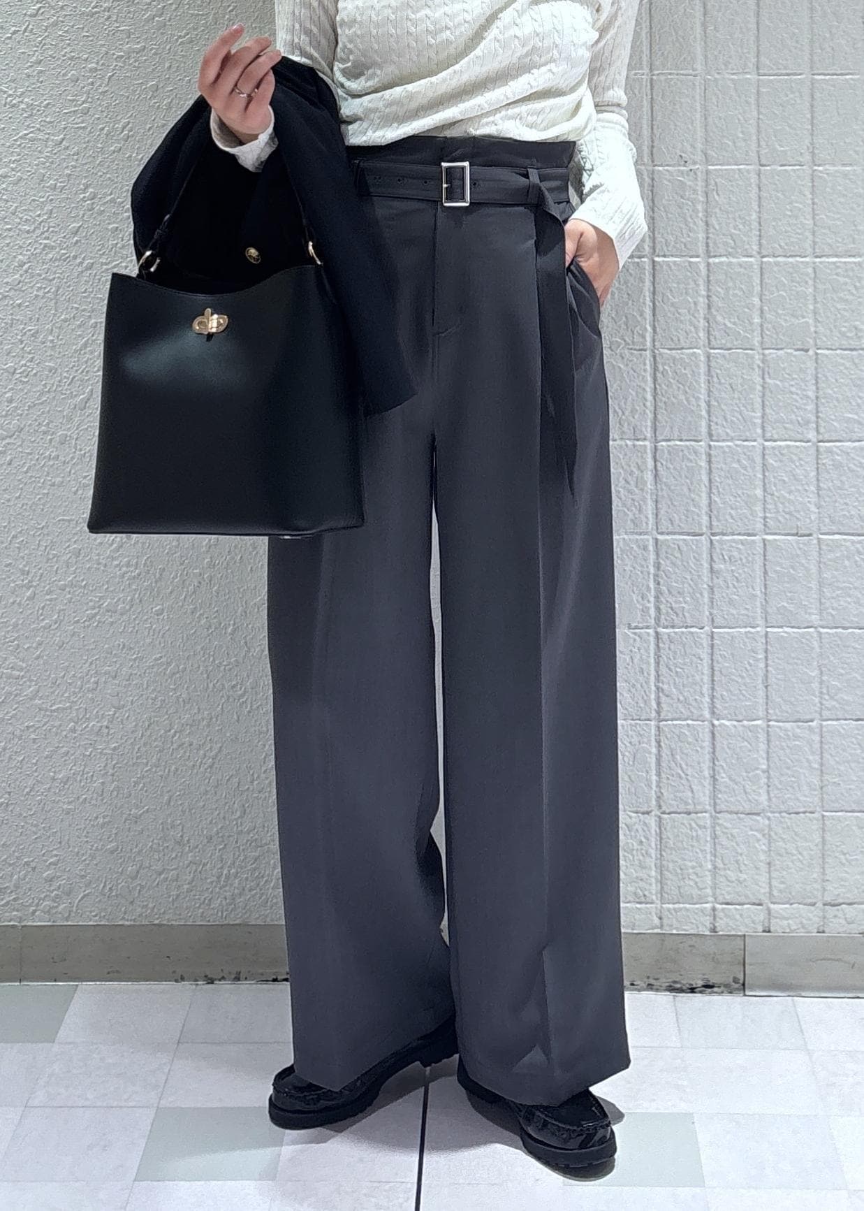 ワイドシルエットですが、幅広すぎないので着回しやすいです!