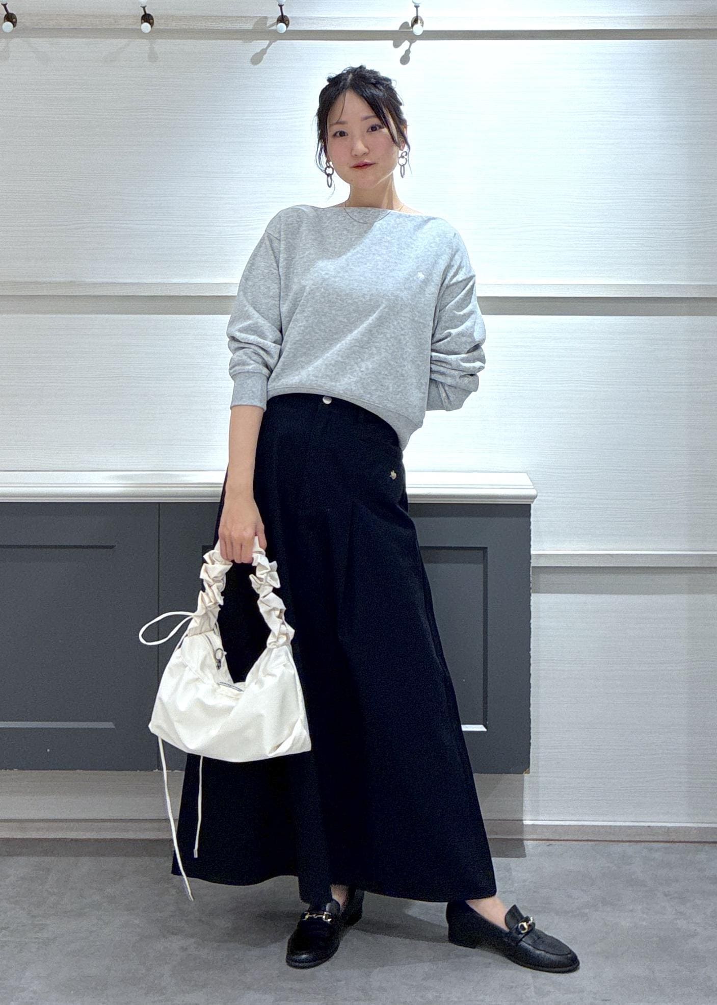 スエットは肌見せでヘルシーに、足元はスニーカーではなくキレイめシューズをチョイスすることでカジュアルだけれどレディ要素を入れ込み大人カジュアルなスタイリングです♡