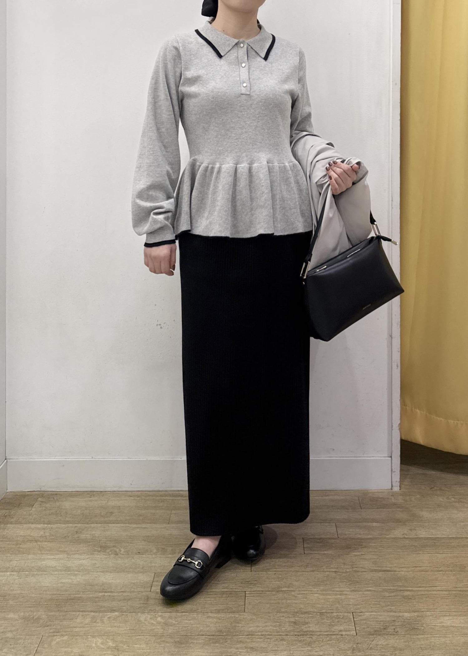 ROPÉ PICNICペプラムポロカラーニットグレー / F¥5,489レビュー程よくフィット感もありつつ、ペプラムシルエットで腰まわりをカバーしてくれるデザインです。