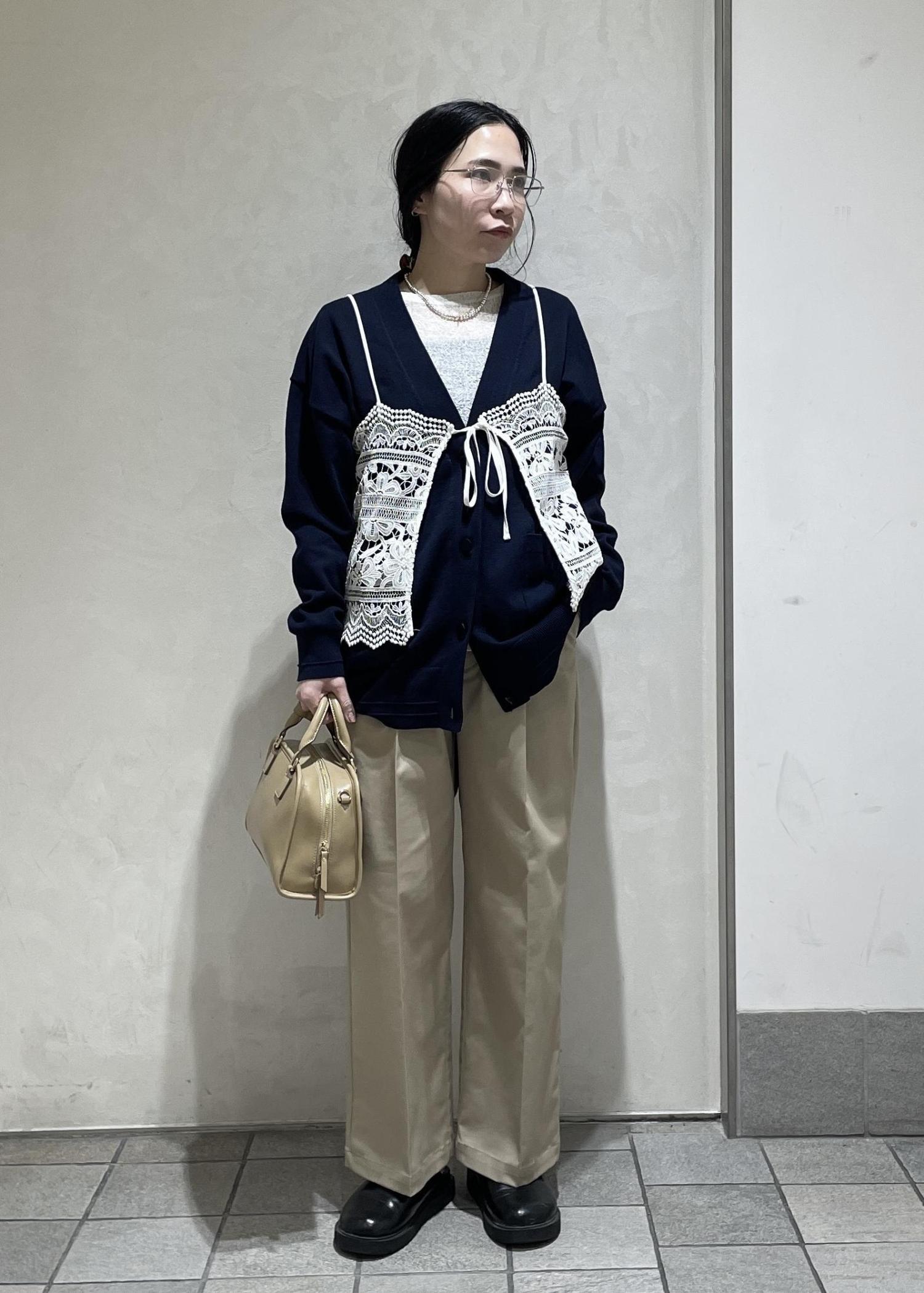 お仕事スタイルも、レースのビスチェを出すだけおしゃれ感がでます!