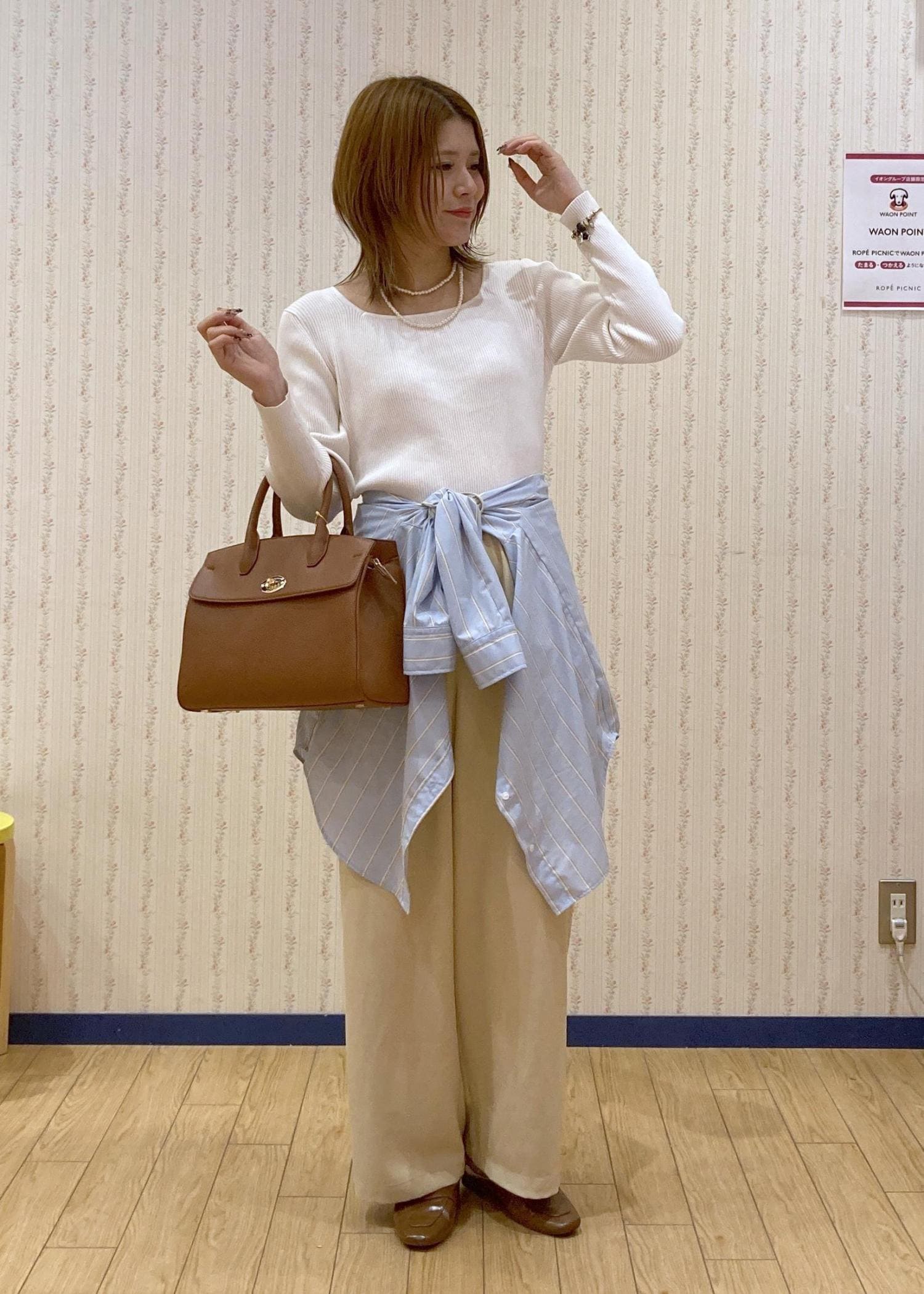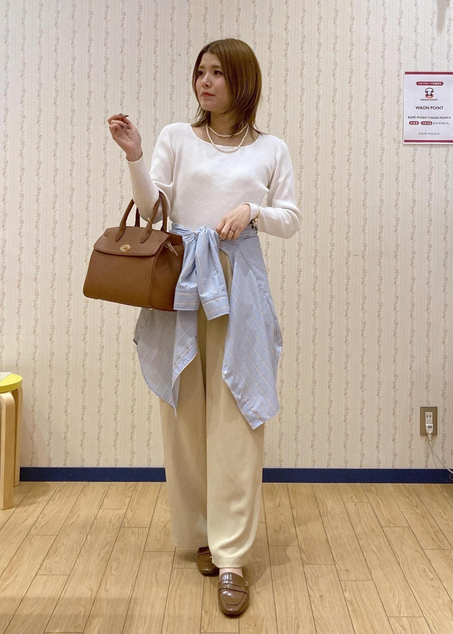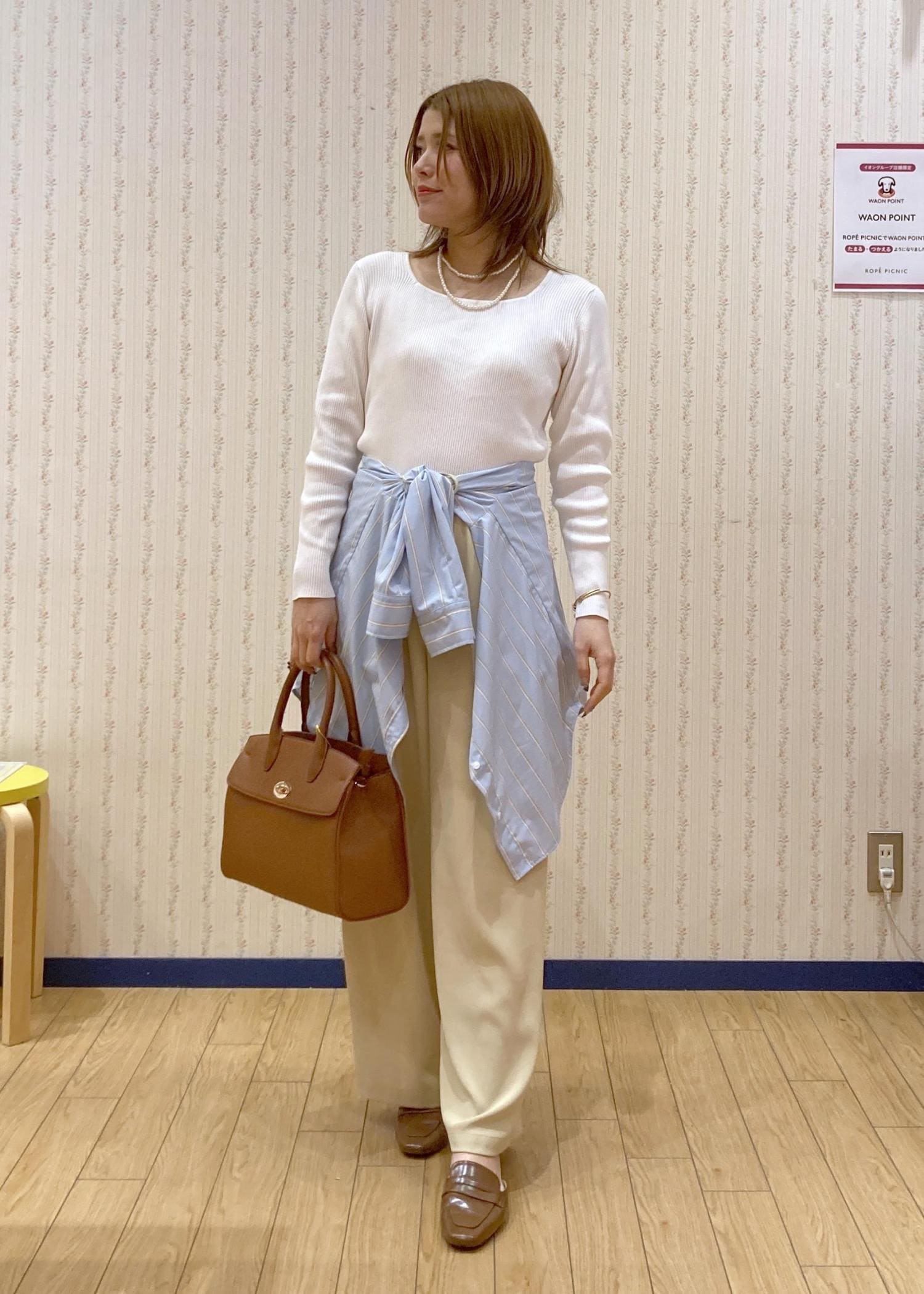 全体を淡いトーンでまとめた春色休日コーディネートです!