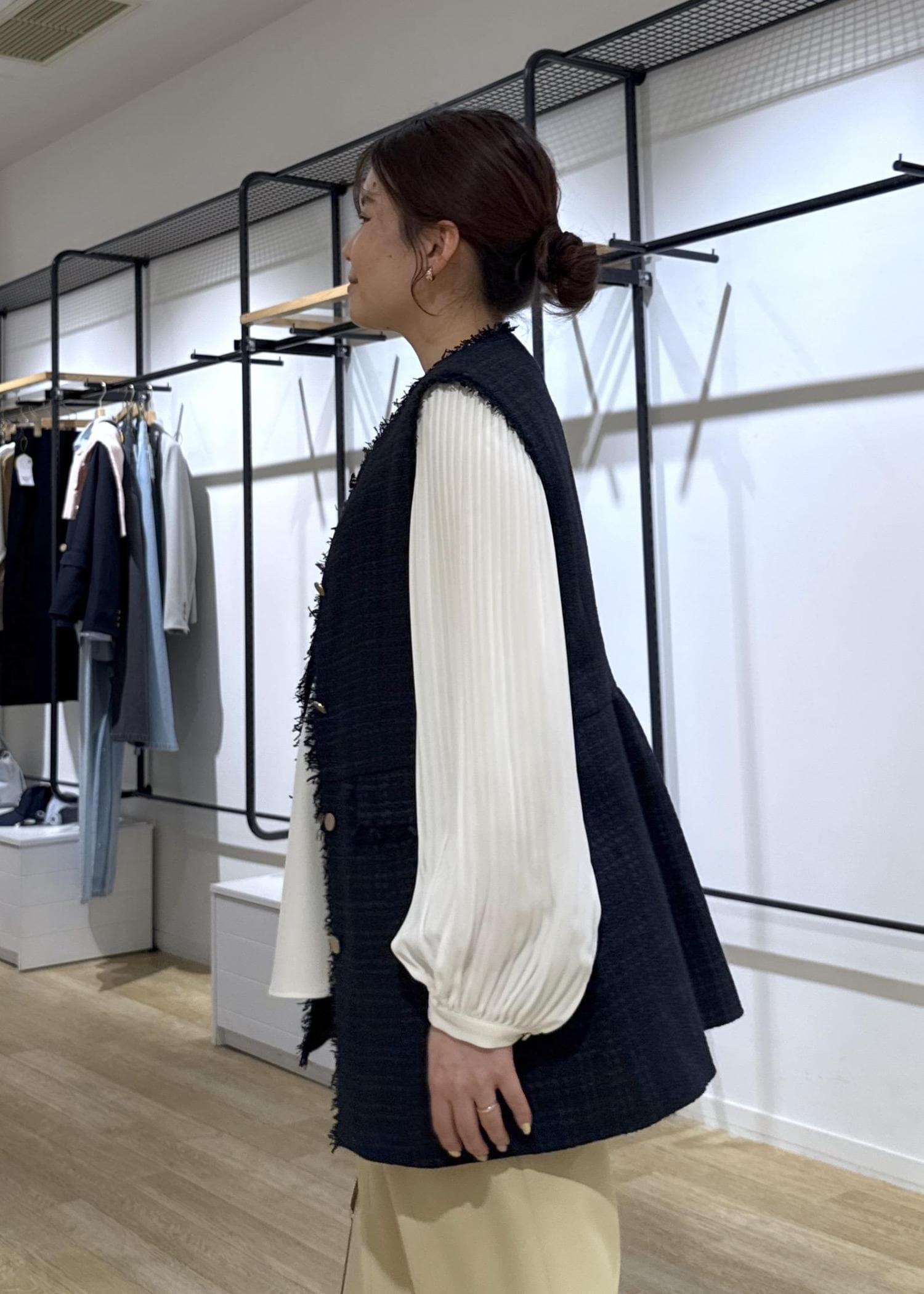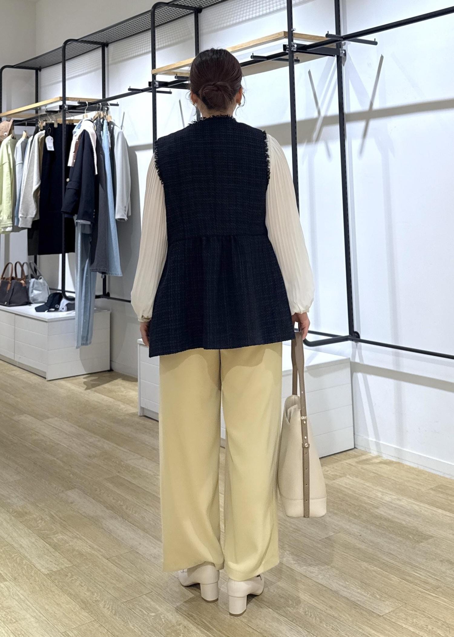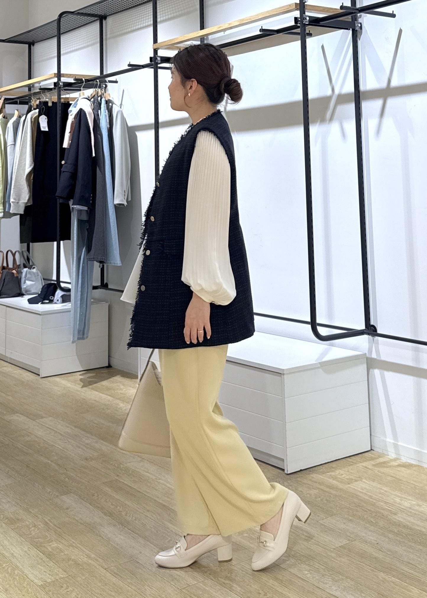 ツイードのジレを合わせてお仕事にも使えるコーデにしてみました!