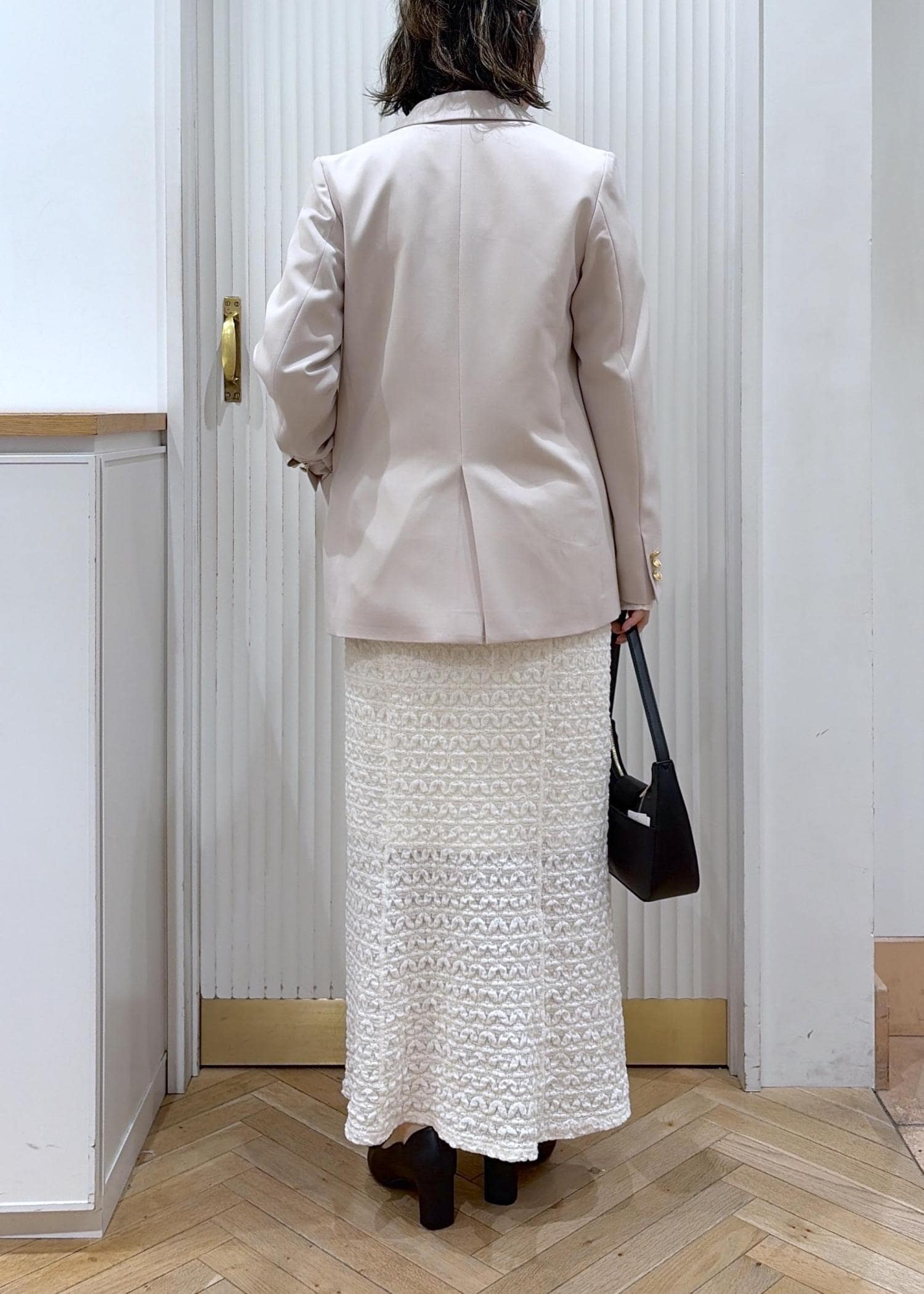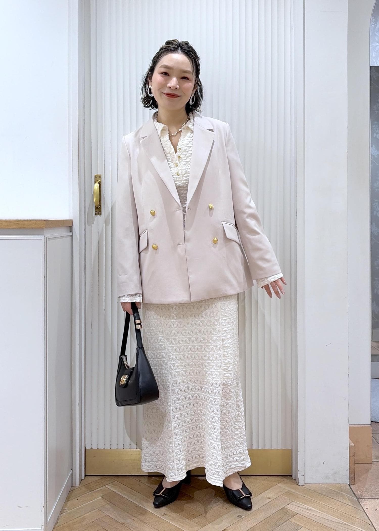 ジャケットを羽織れば女らしいスタイリングの完成!