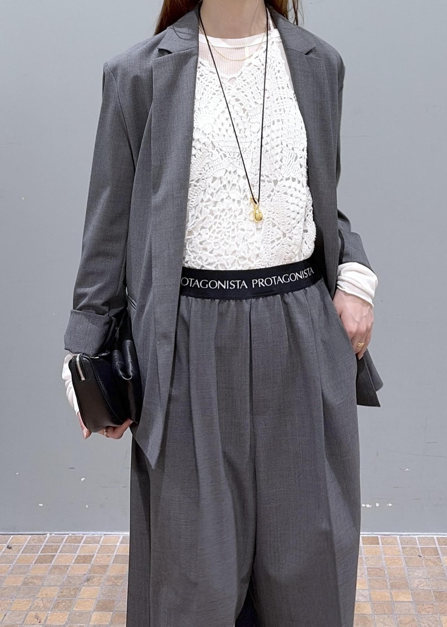 ADAM ET ROPÉ FEMME【PROTAGONISTA for ADAM ET ROPE'】別注2wayストレッチ Washable Pantsグレー / 0¥29,700レビューサラッと柔らかな素材で肌触りが良いです◎ストレッチが効いており夏でも快適です。インしてややハイウエスト気味で着用すればフラットでも◎腰位置で履いてルーズに着るのも可愛いです。