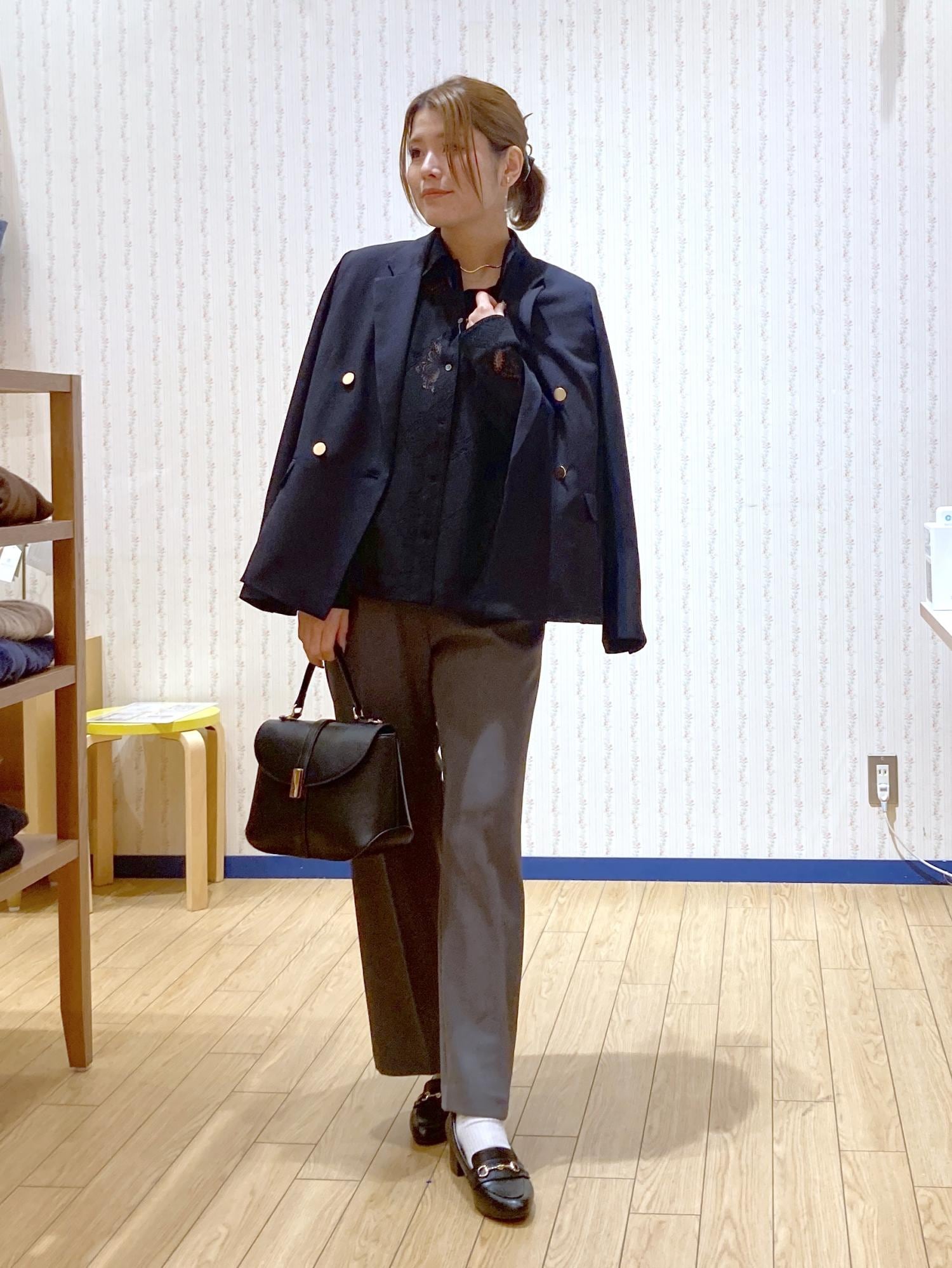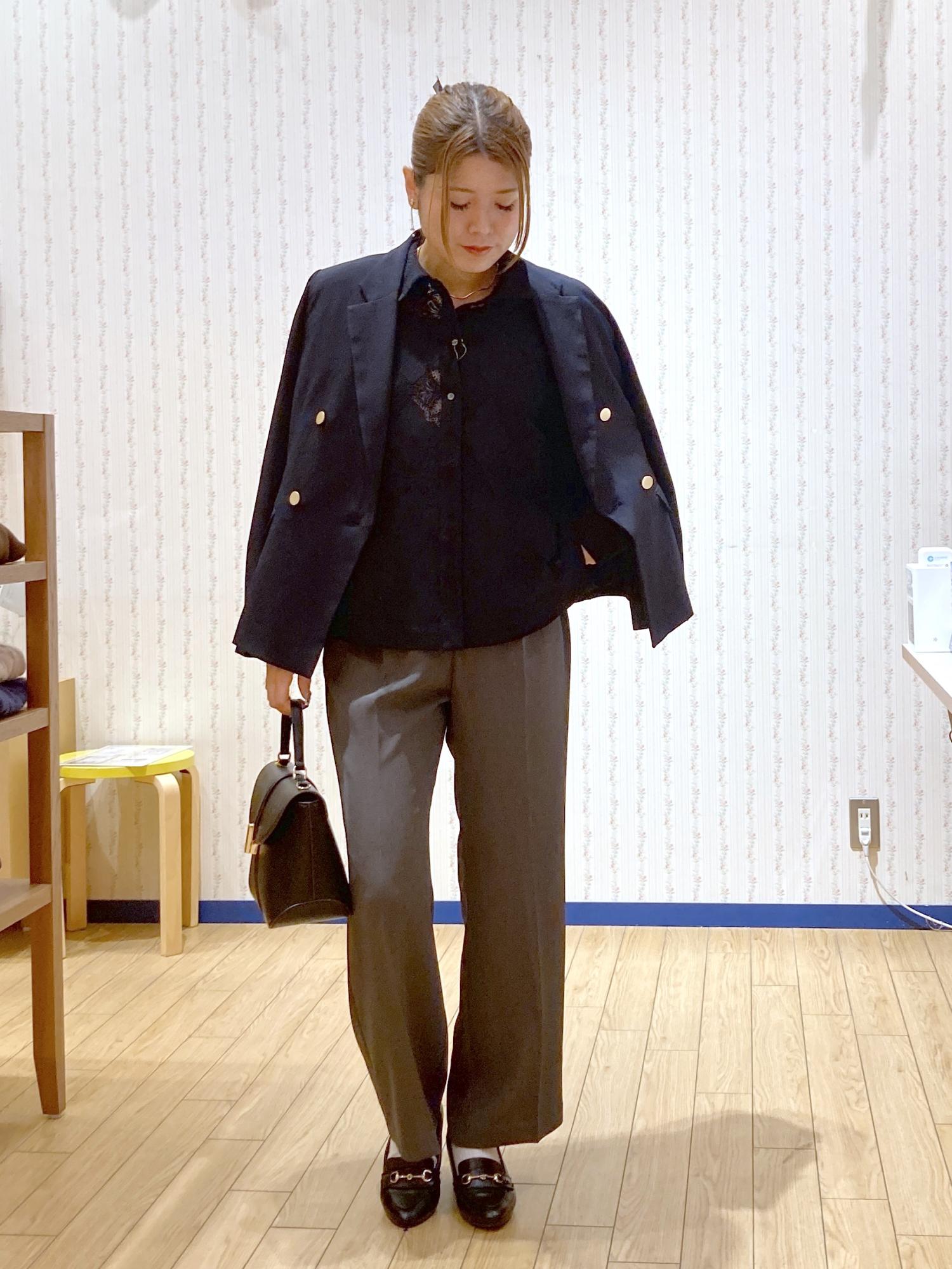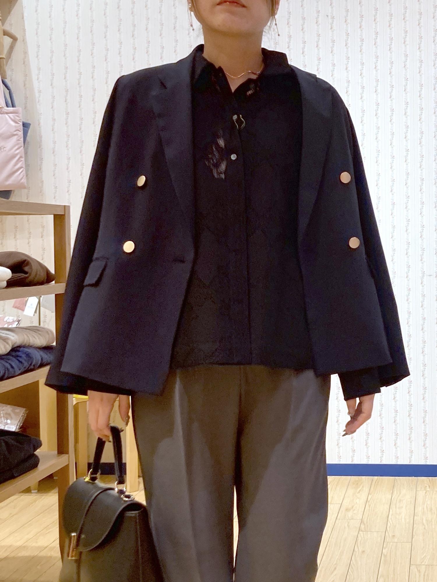 まだ肌寒い季節なのでネイビージャケットを肩がけしました!