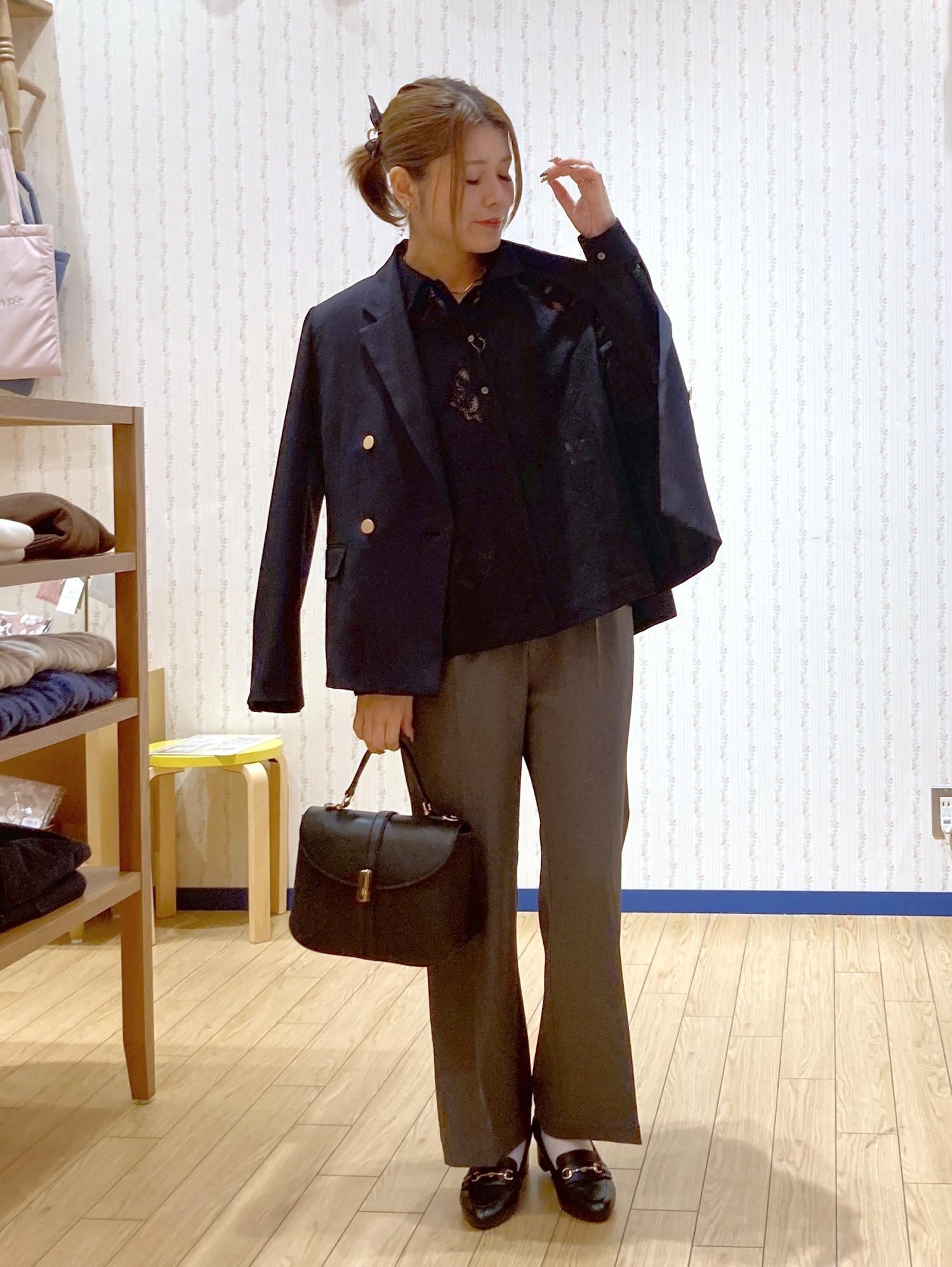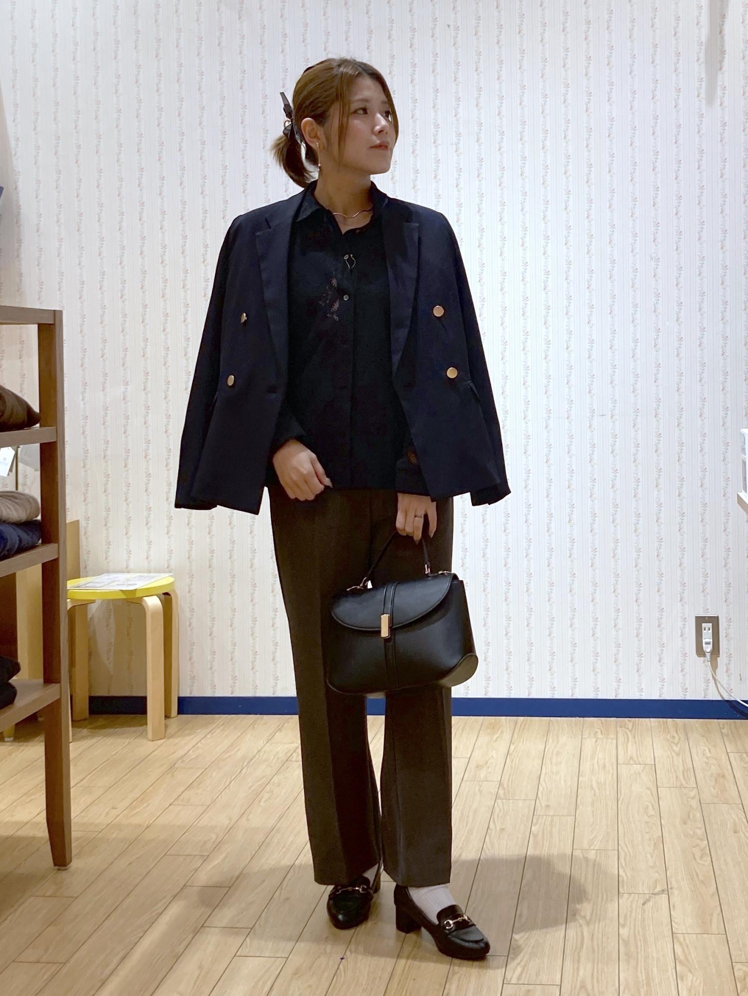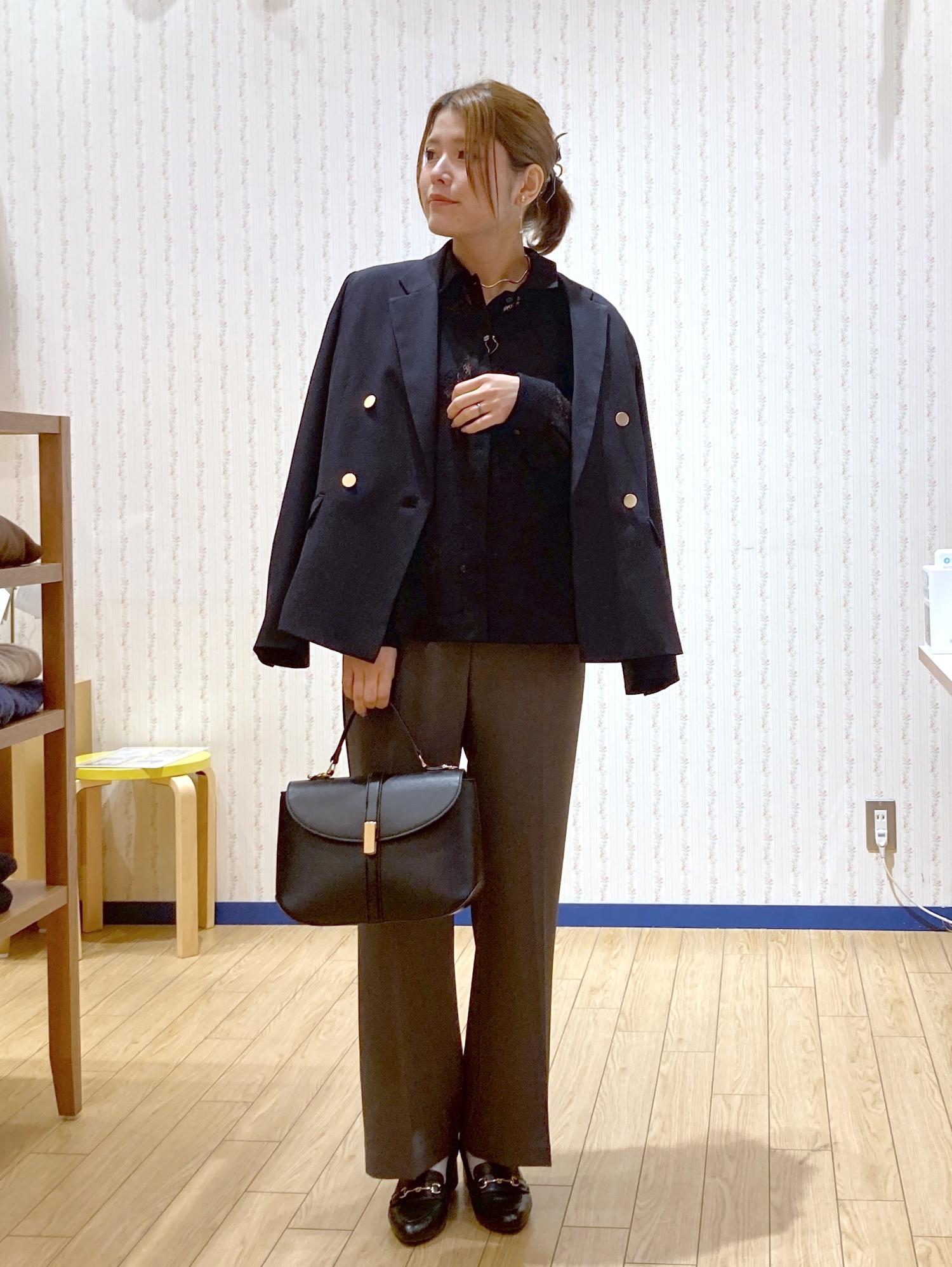 まだ肌寒い季節なのでネイビージャケットを肩がけしました!
