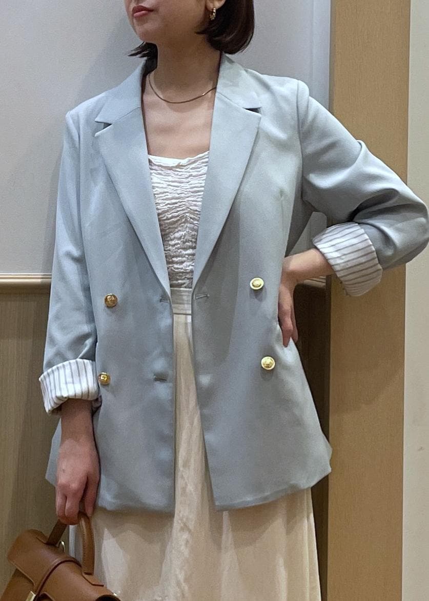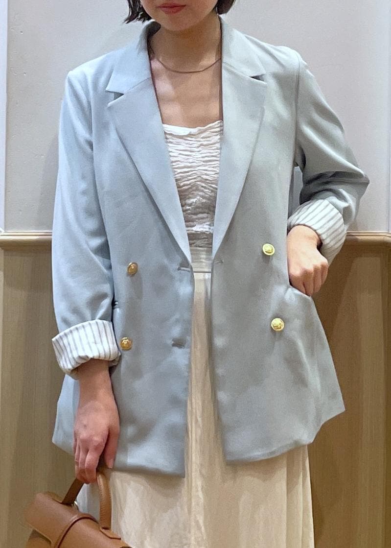VIS【美easy】コンフォート金ボタンジャケット/イージーケア・UVケア・セットアップ対応ライトグリーン / S¥8,899レビュー身長156cmでSサイズ着用。