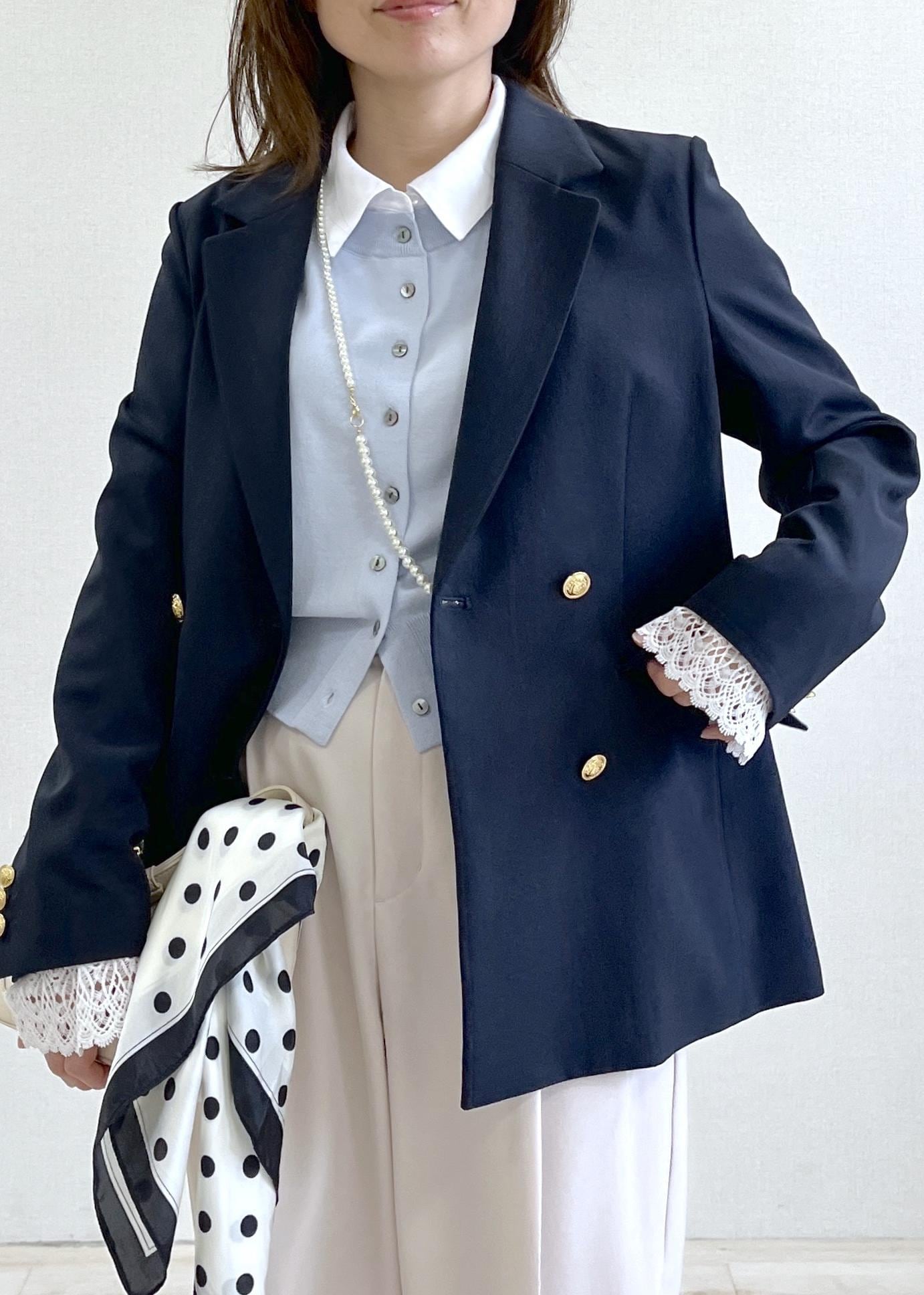 VIS【美easy】コンフォート金ボタンジャケット/イージーケア・UVケア・セットアップ対応ネイビー / S¥8,899レビュー人気の美easyシリーズの新作です!152cmでSサイズ着用し、サイズ感は大きすぎることなく着られる細身のシルエット。着丈はお尻が隠れるくらいの丈。サラッとした素材でシワになりにくい!お洗濯もできる優秀アイテム。これからの時期にぴったりなアウターです。