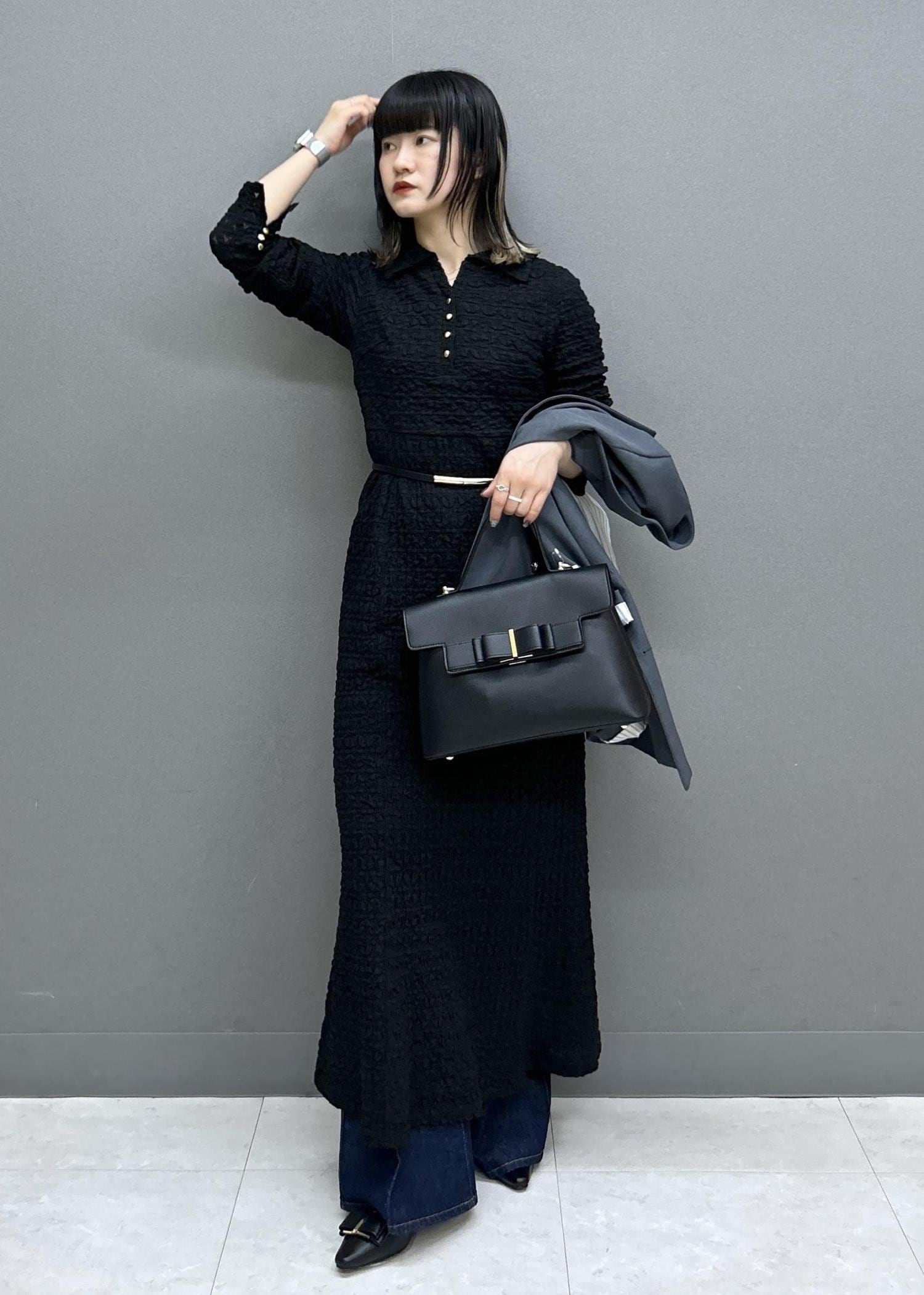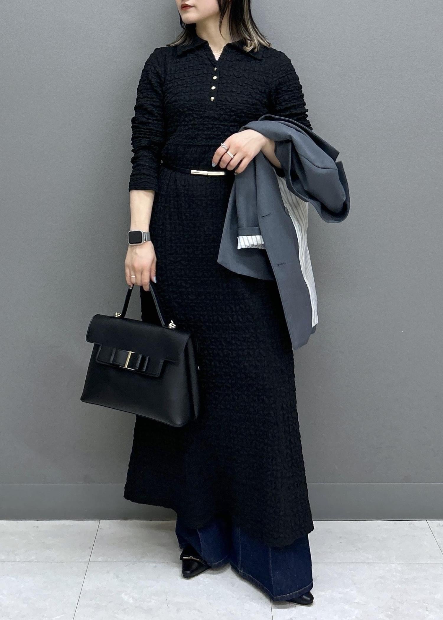 VIS膨れジャガードカットソーワンピースブラック / F¥8,899レビュー157cmでくるぶしにかかるくらいの着丈でした。