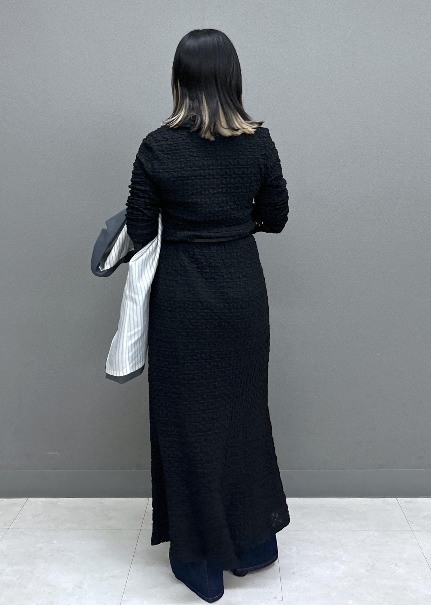 着丈はやや長めでお尻がすっぽり隠れるくらいの長さです。