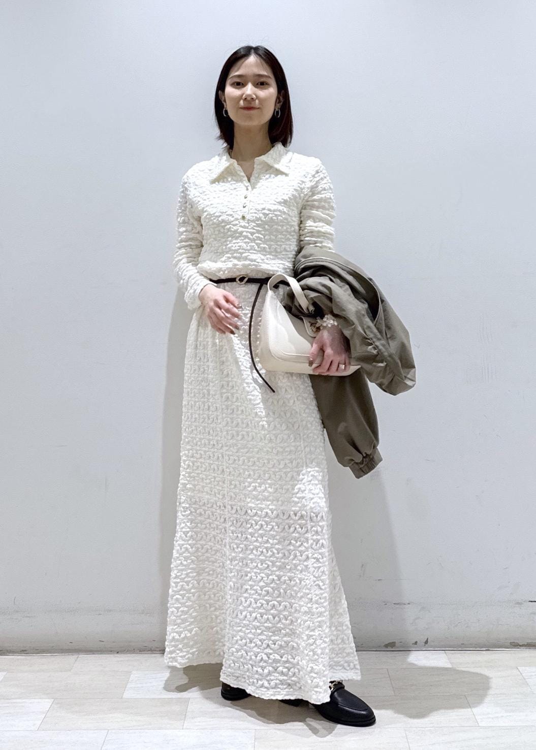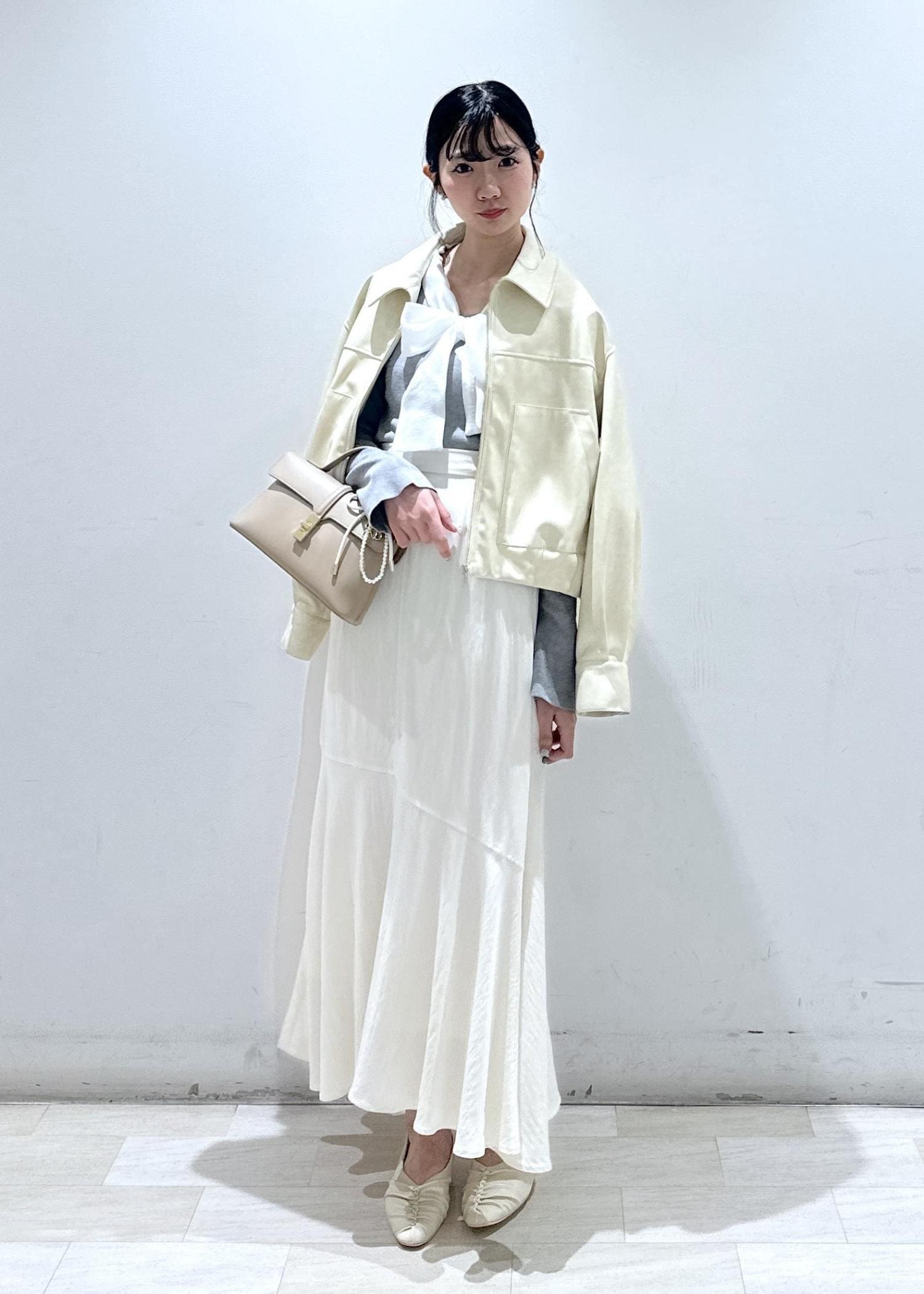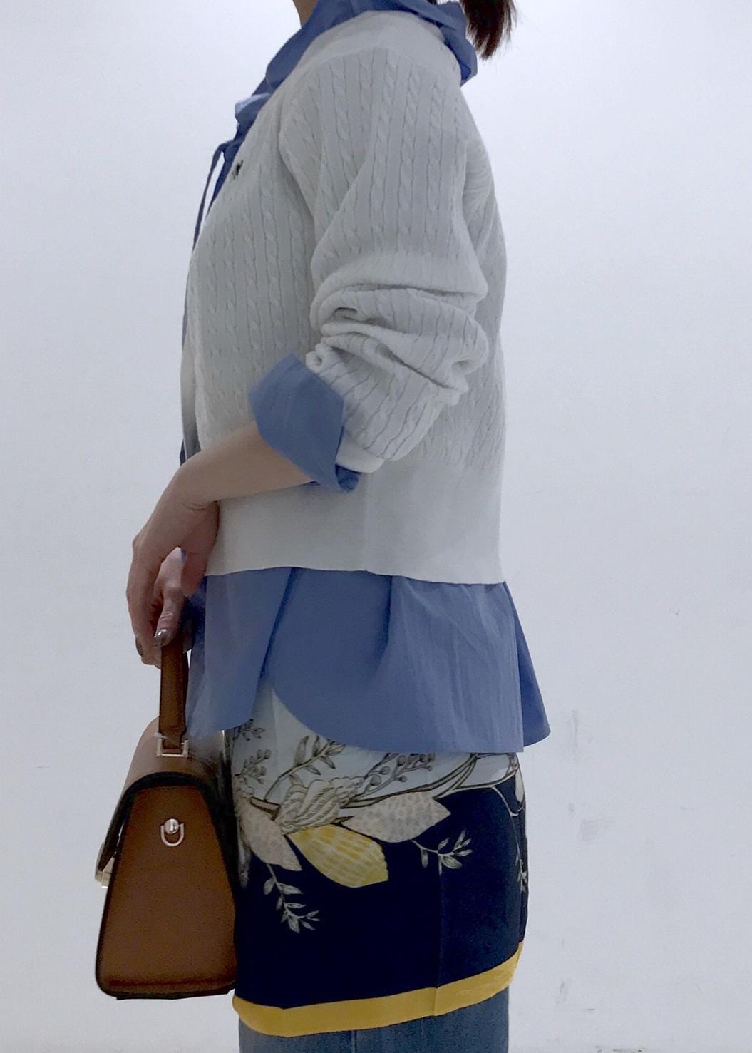 コンパクトなサイズ感ですが生地が柔らかいので、シャツやレースのインナーとレイヤードしていただけます。
