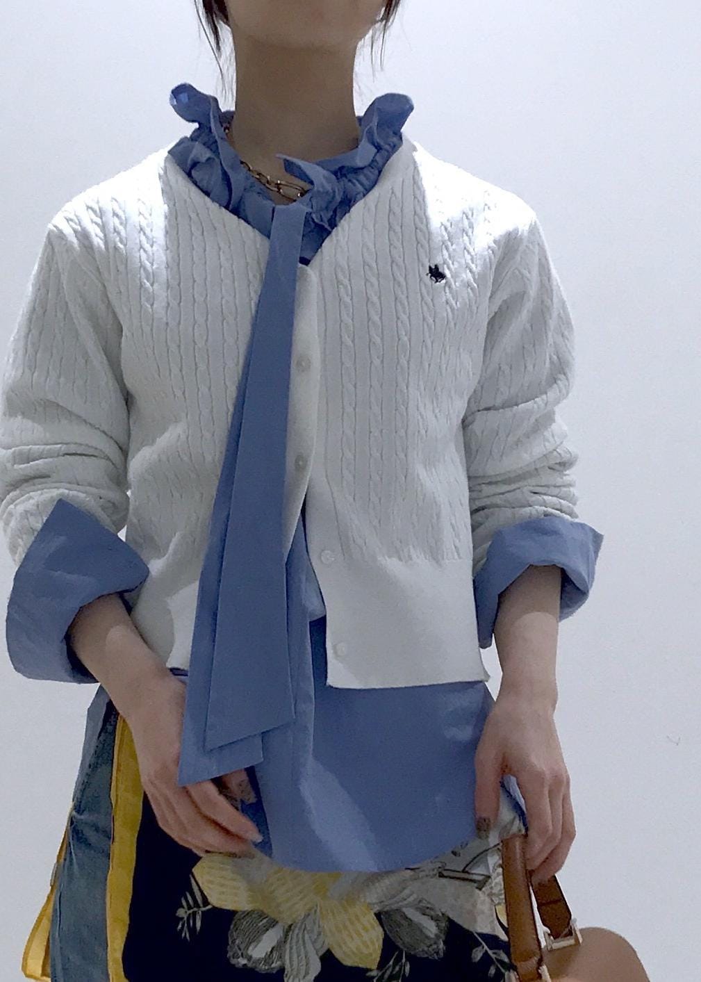 VIS【POLO BCS】VIS別注ミニケーブルノーカラーカーディガンホワイト / F¥6,930レビュー150cmで腰が隠れる丈でした。