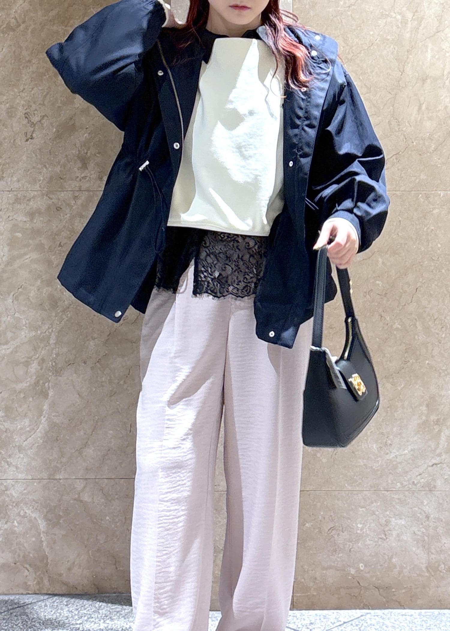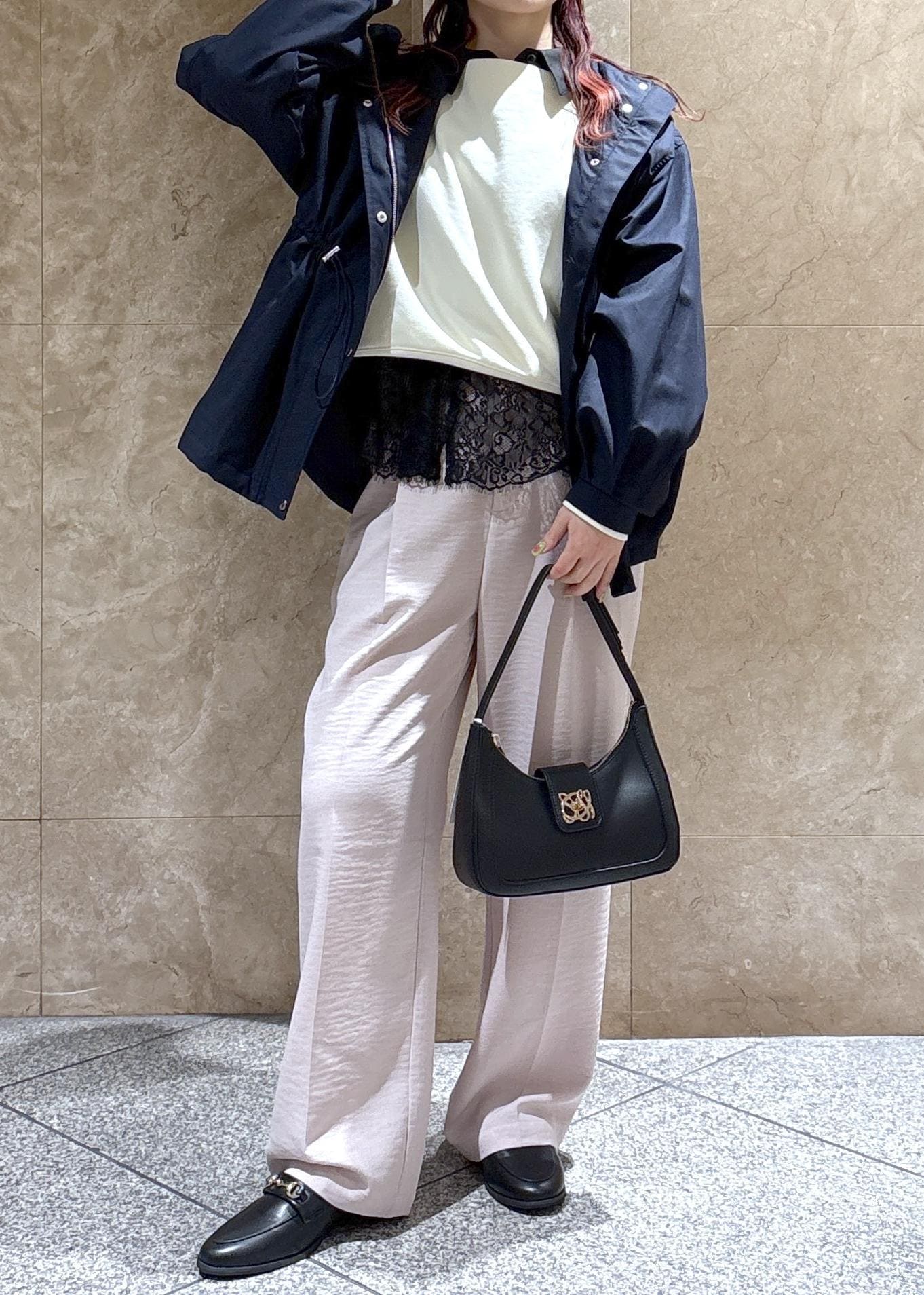 全体的にゆったりめなので、中に着るものは選ばずに着用できそう◎