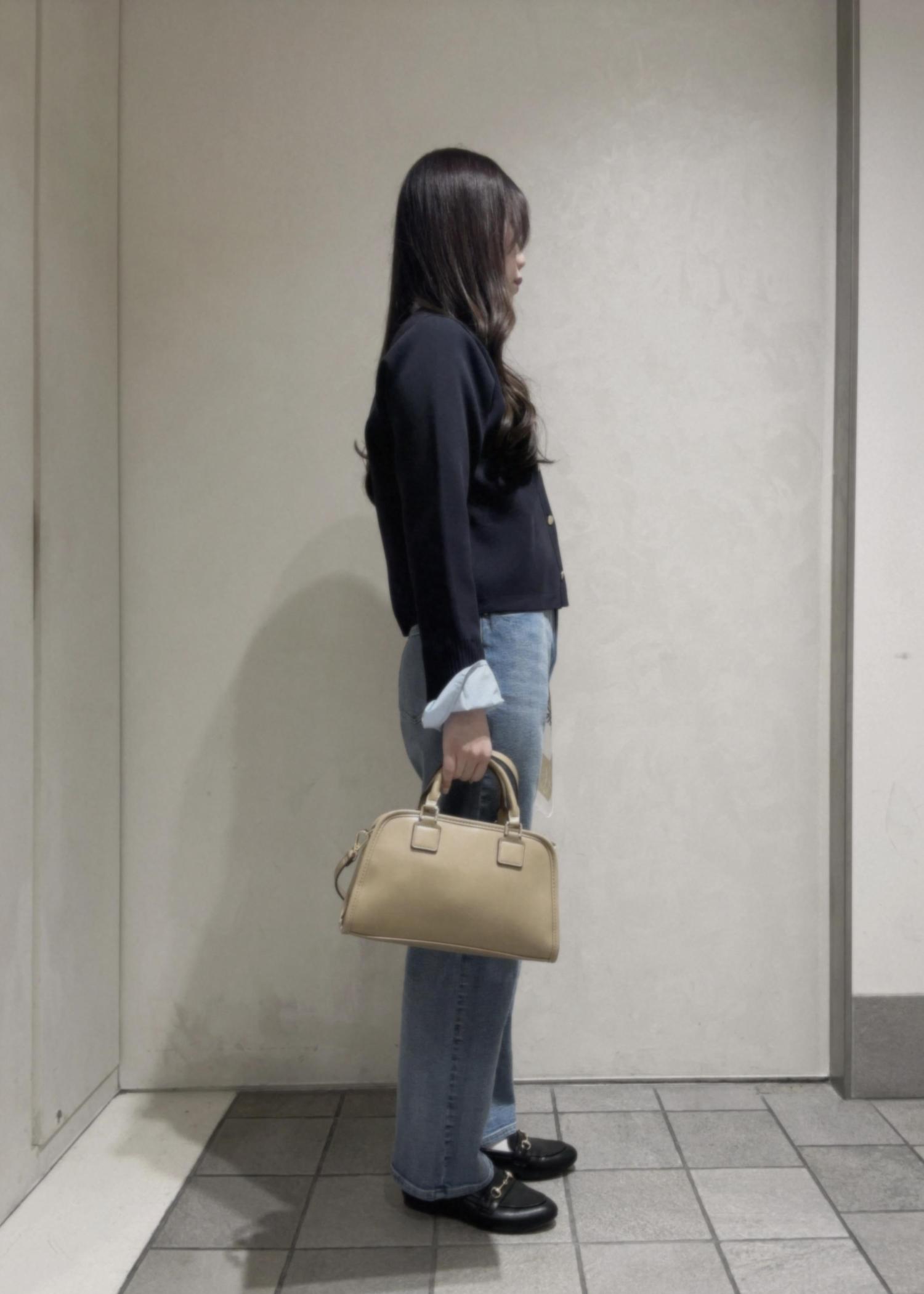 どんなボトムにも合わせやすい襟フリルドッキングカーディガンをデニムと合わせ、きれいめカジュアルのコーディネートです!