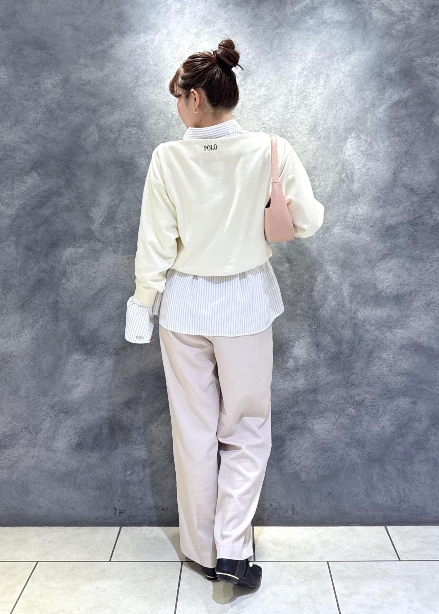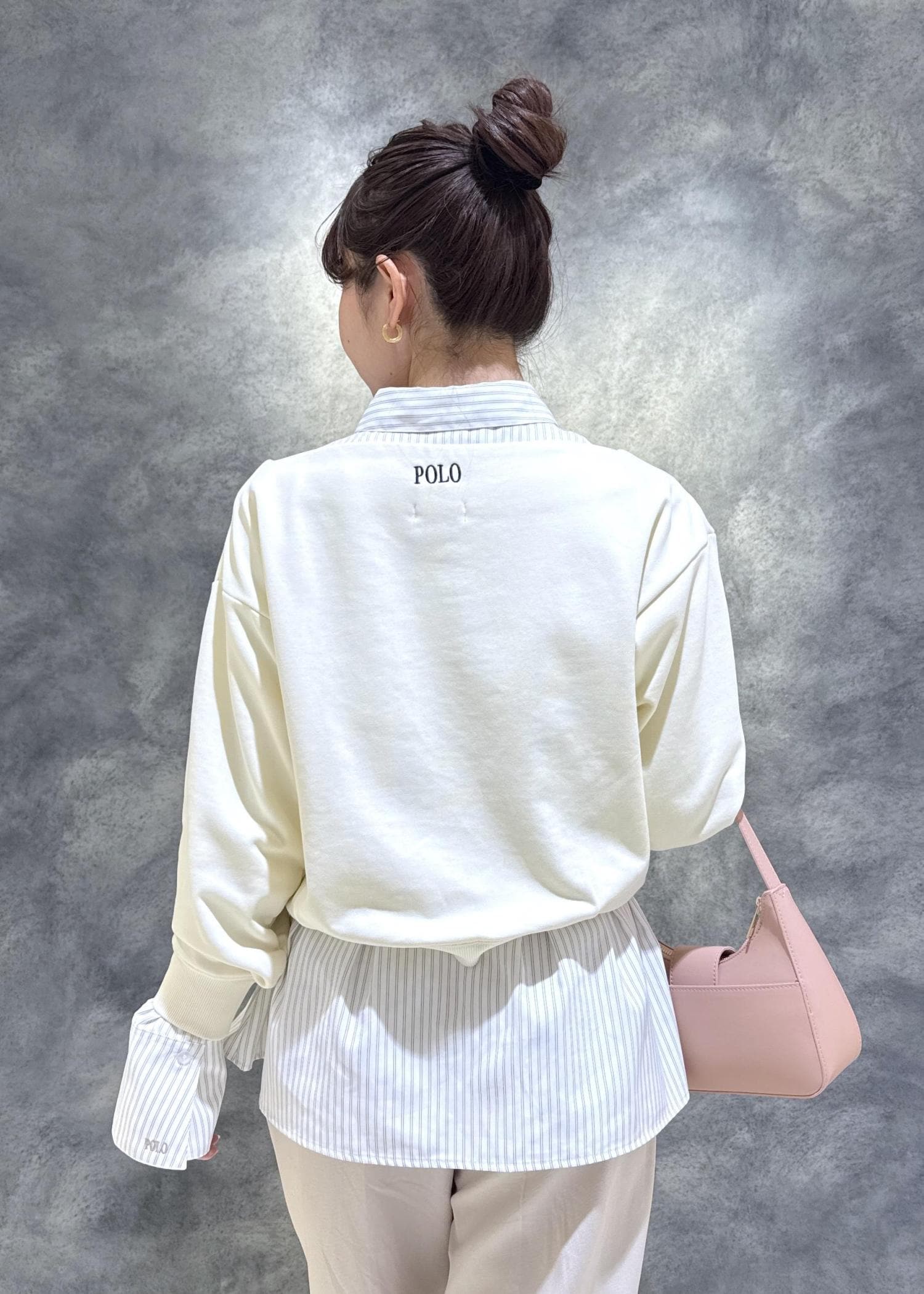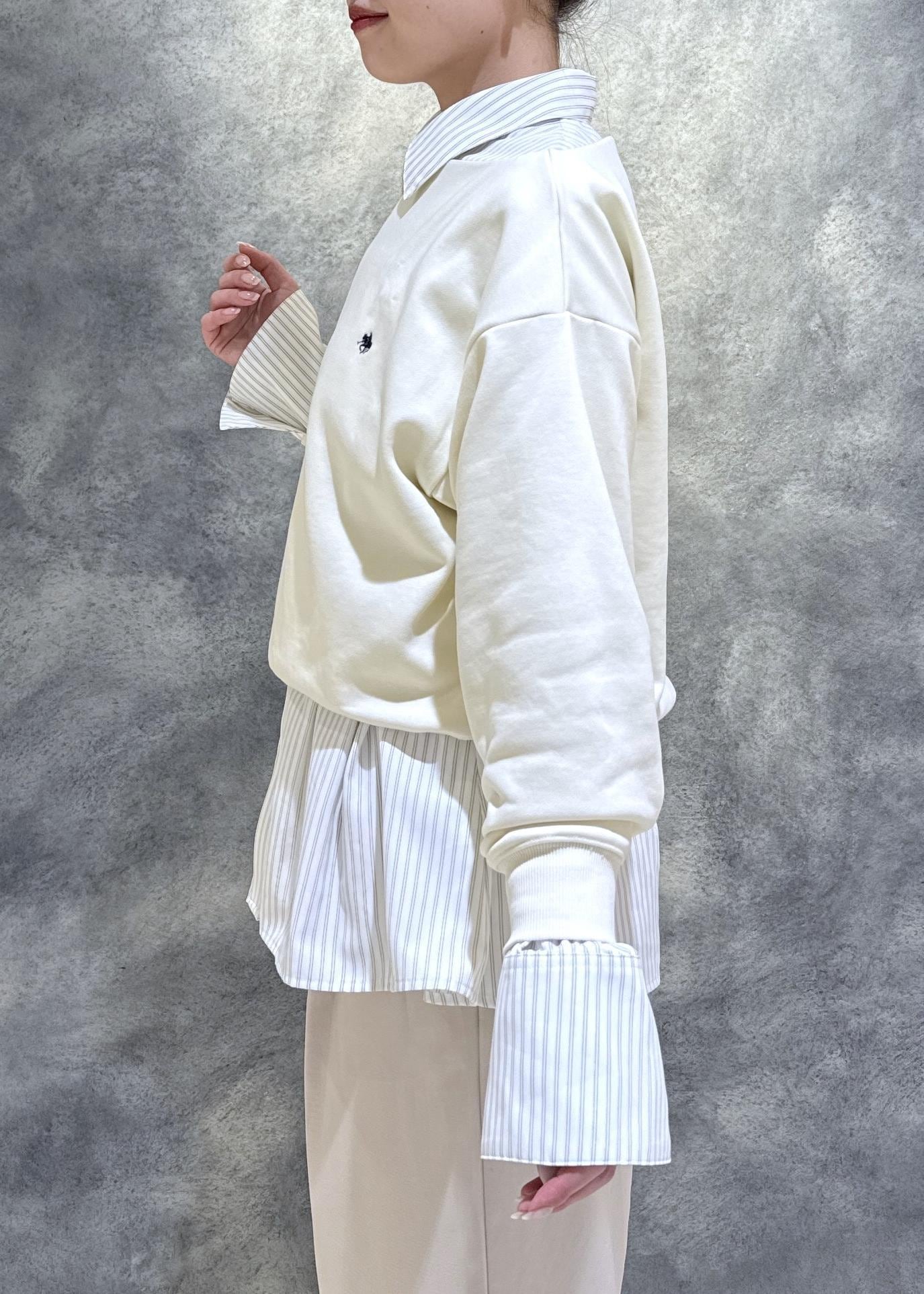 POLO BCS別注アイテムのシャツとスウェットトップスを合わせて、きれいめ×カジュアルなレイヤードスタイルに◎