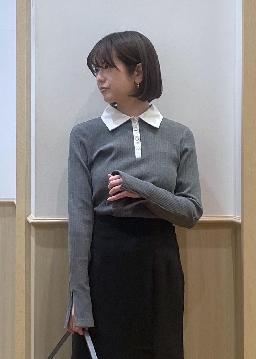 バイカラーポロ襟カットソー/イージーケア