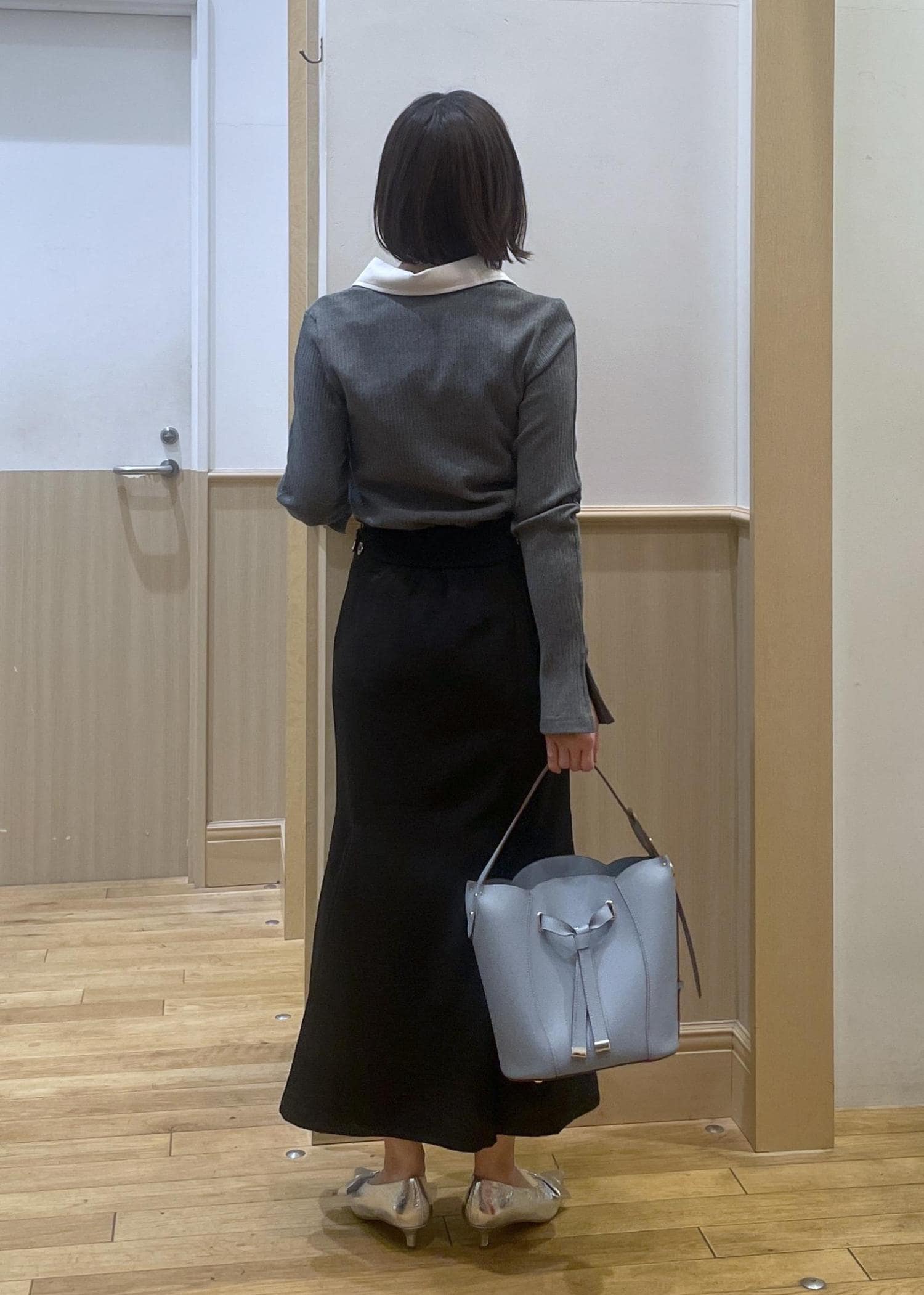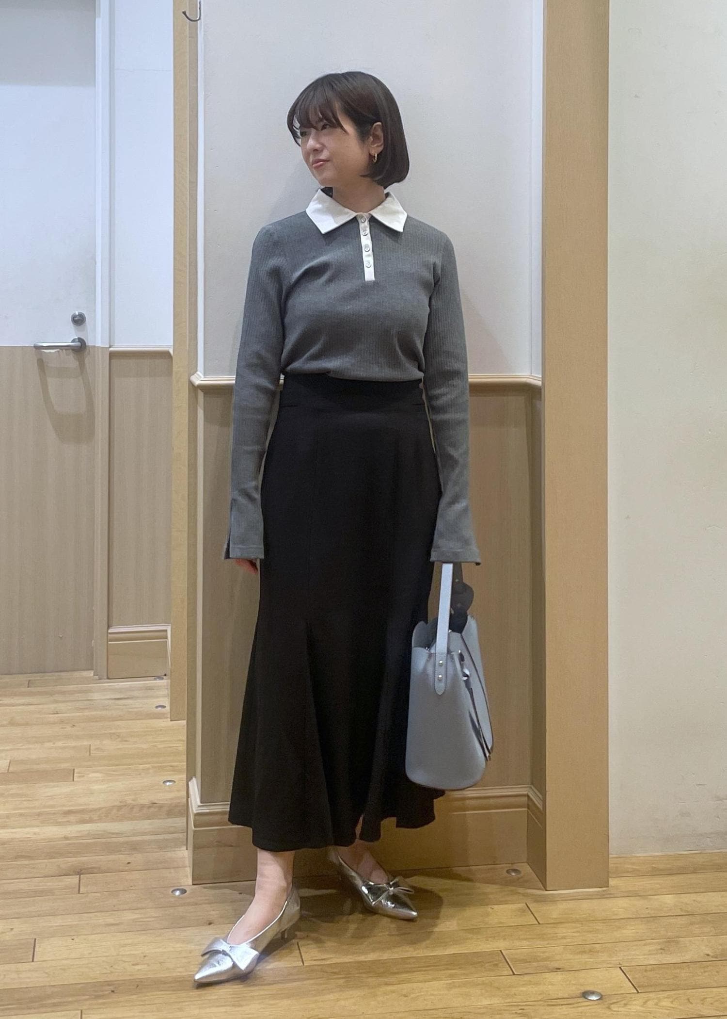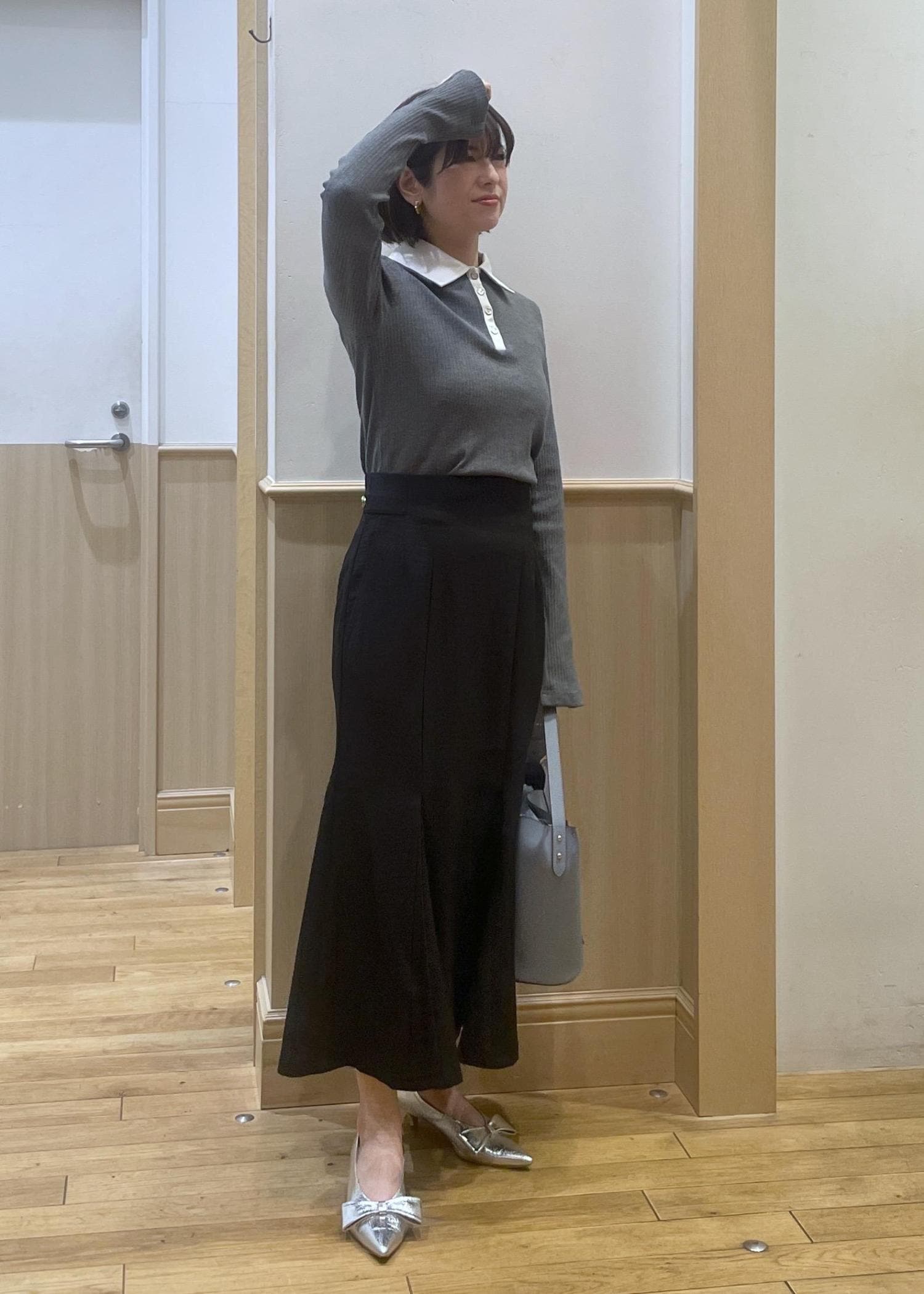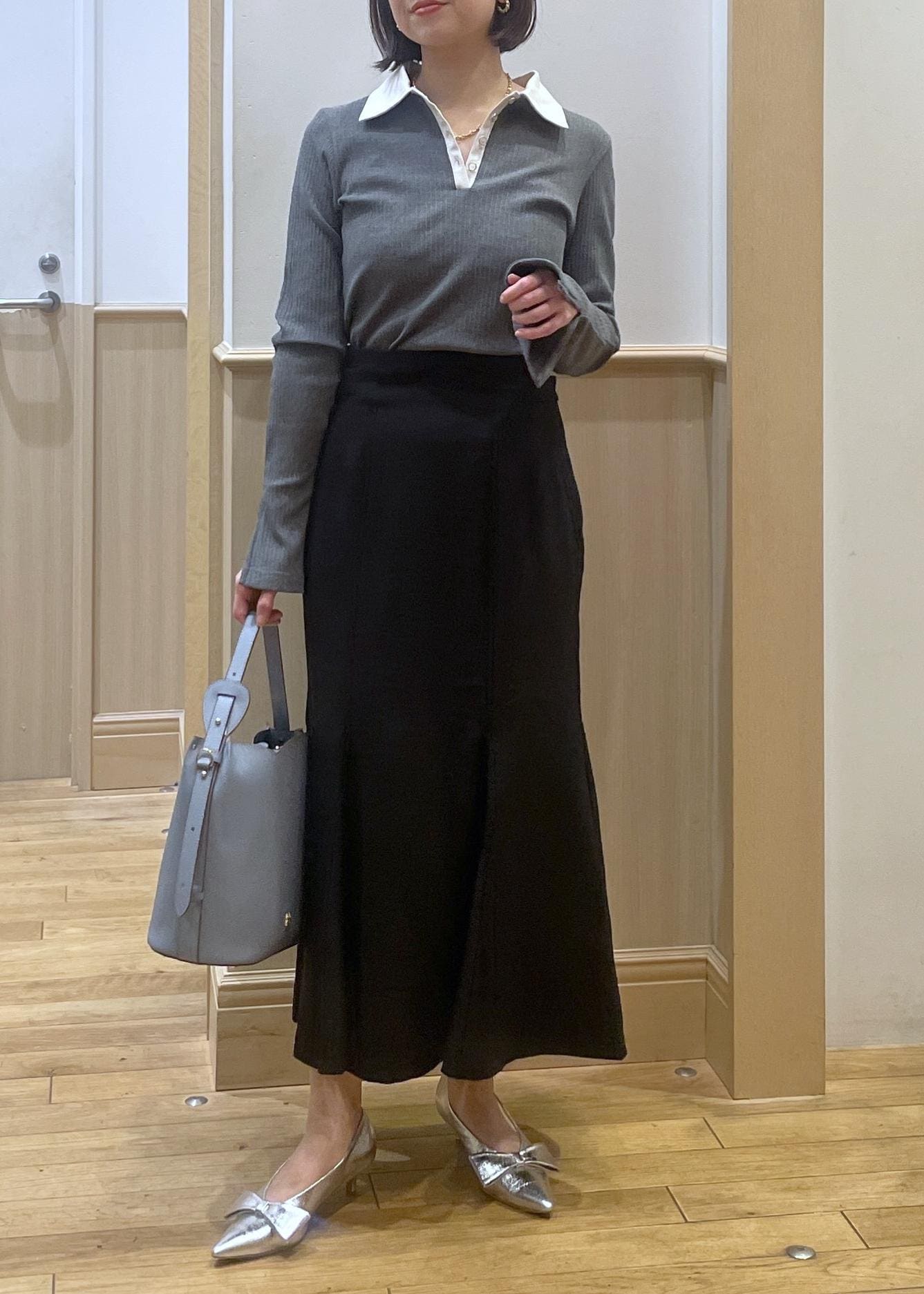 グレー×ブラックのモノトーンコーデ。