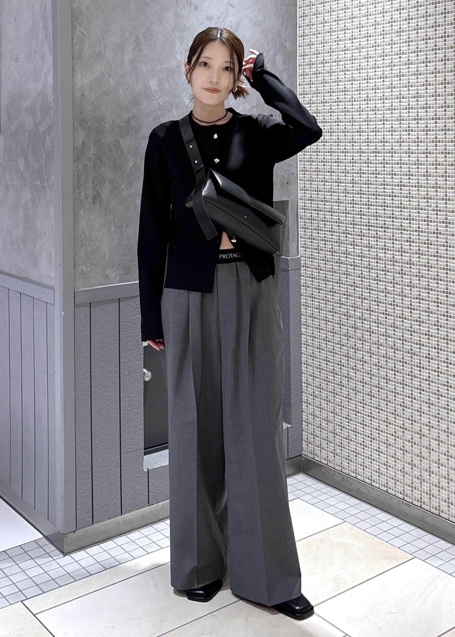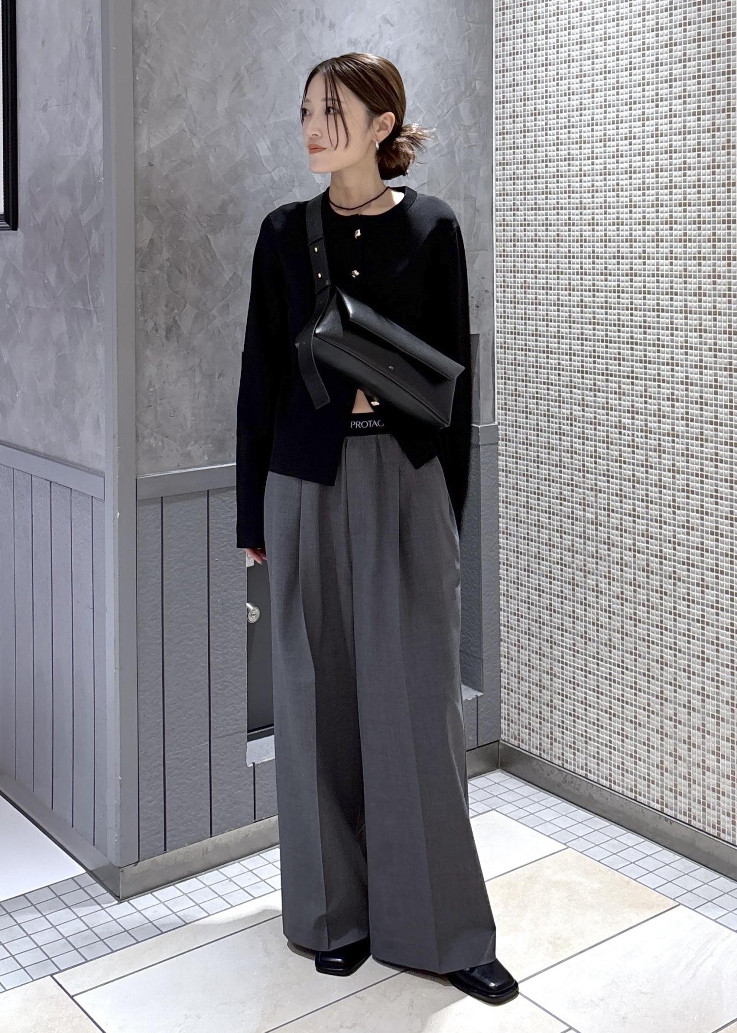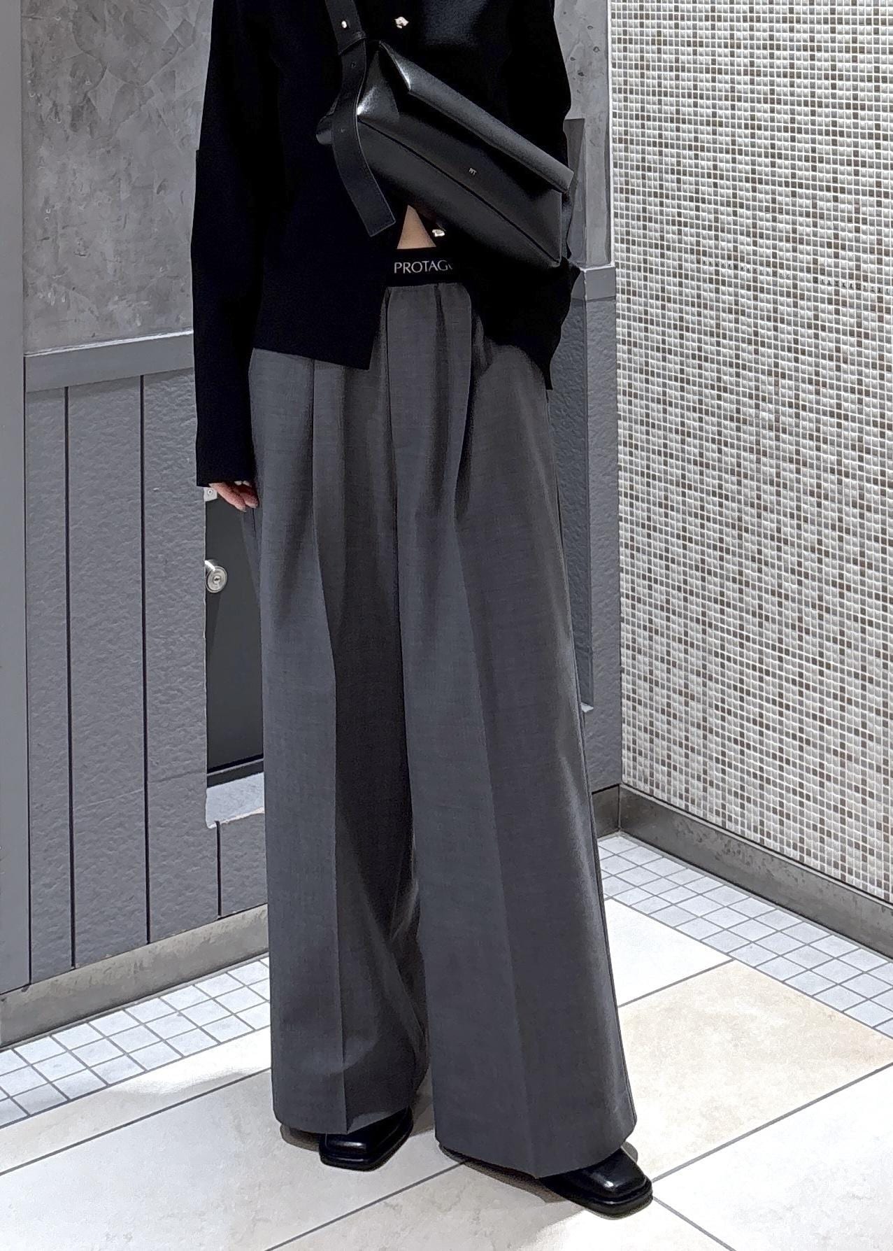 PROTAGONISTAのパンツのウエストデザインが可愛いので、38のサイズの下ボタンを開けてチラ見せさせました♡