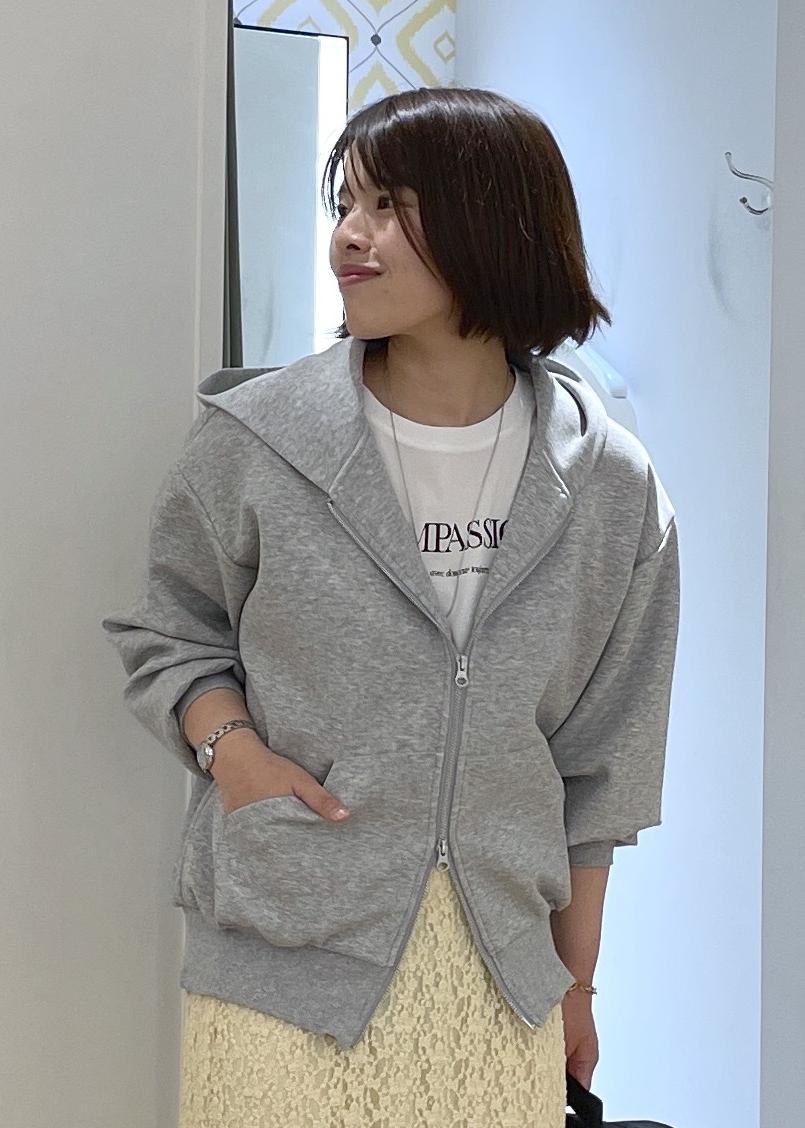 ROPÉ PICNICコクーンシルエットダブルジップフーディライトグレー / F¥6,490レビューハリのあるふっくらとした綿混のダンボール素材で、肌触りが良く着心地も良いです。身頃はゆったりとしていますが、裾は絞られているのですっきりと着用できます。後ろにタックが入っており、コクーンシルエットが可愛いパーカーです。ダブルジップなので、上下少しずつ開けてあげると抜け感のある着こなしになります。