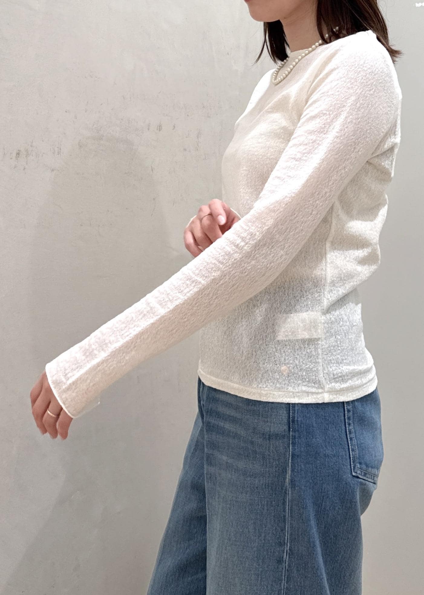 ROPÉコットンシアーロングスリーブカットソー/イージーケアホワイト / F¥16,500レビュー透け感があり、表情感のあるカットソー。