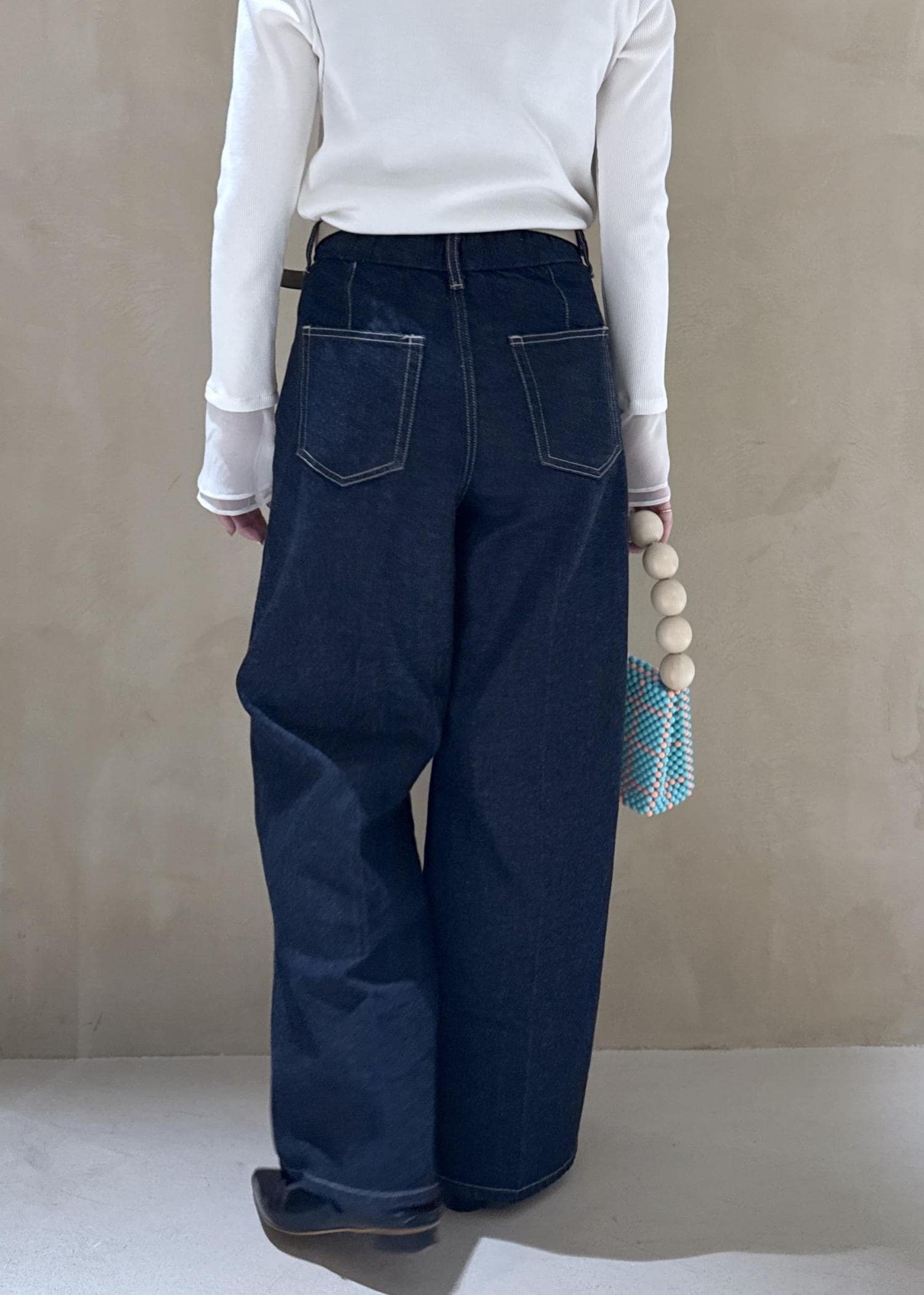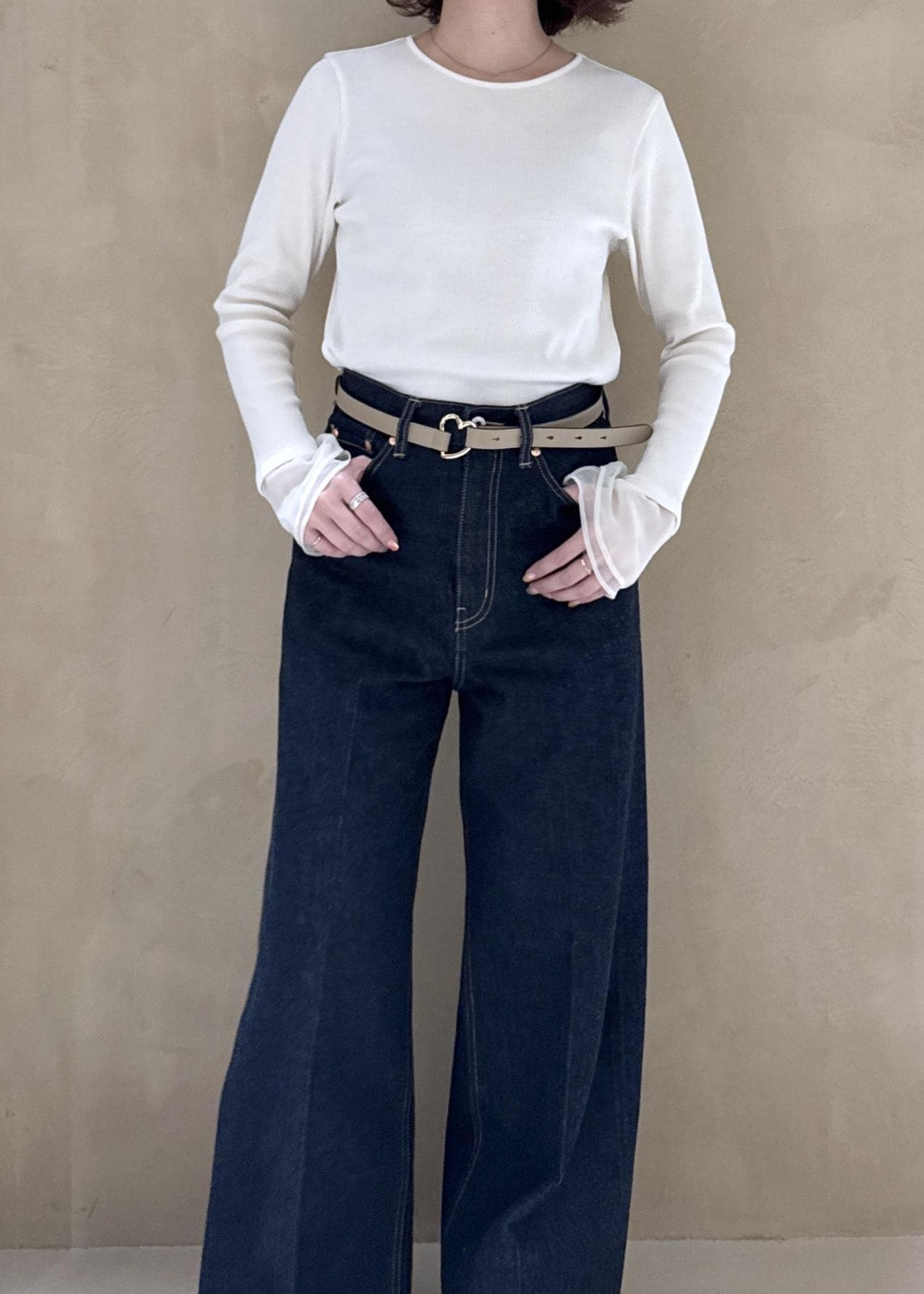 ROPÉイージーワイドデニムパンツ(岡山デニム)/セットアップ対応・イージーケアネイビー / 36¥30,800レビュー156cmで36サイズを着用しました。