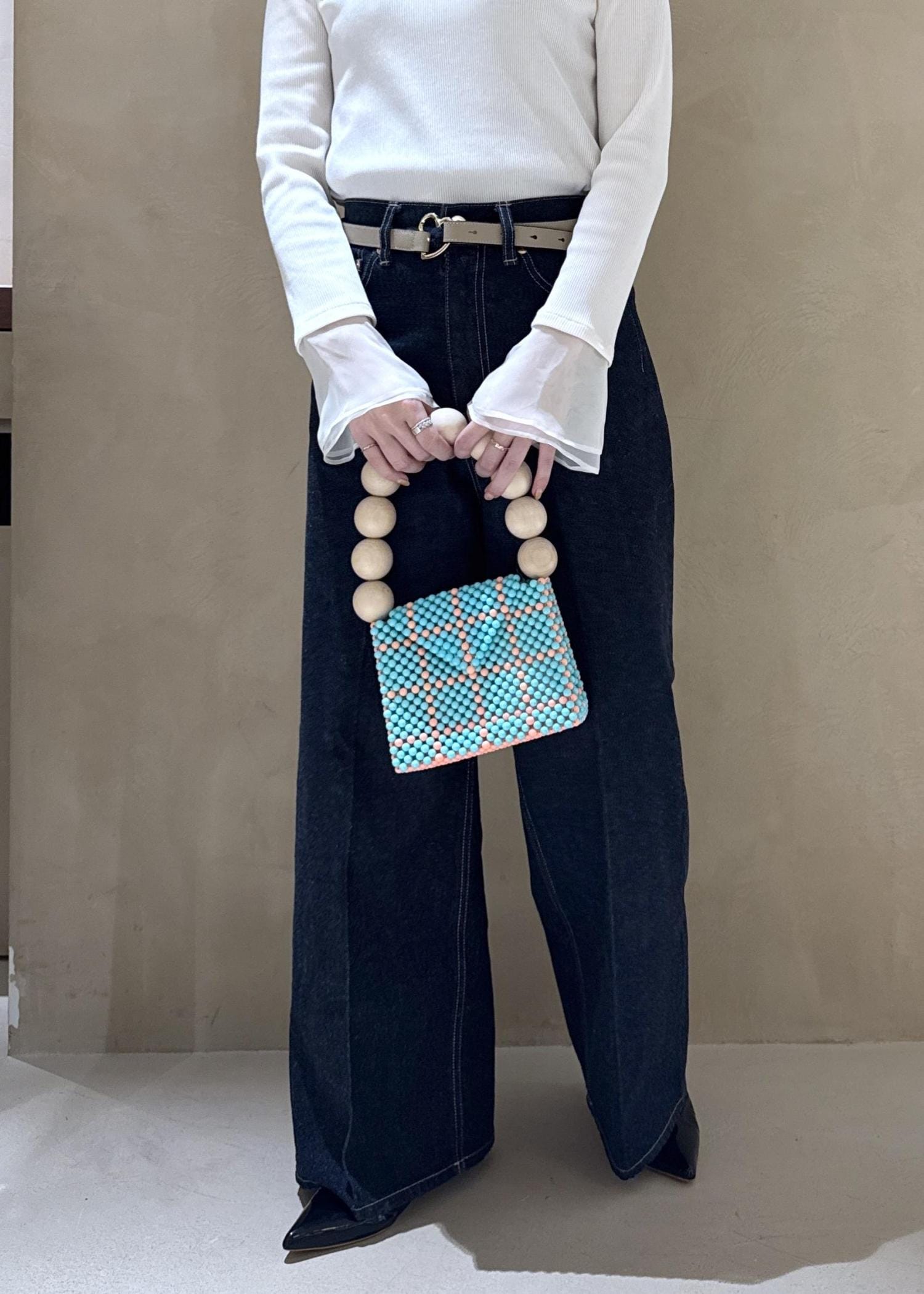 ボリュームのあるパンツやワンピースと合わせてもキレイなシルエットに見せてくれます。